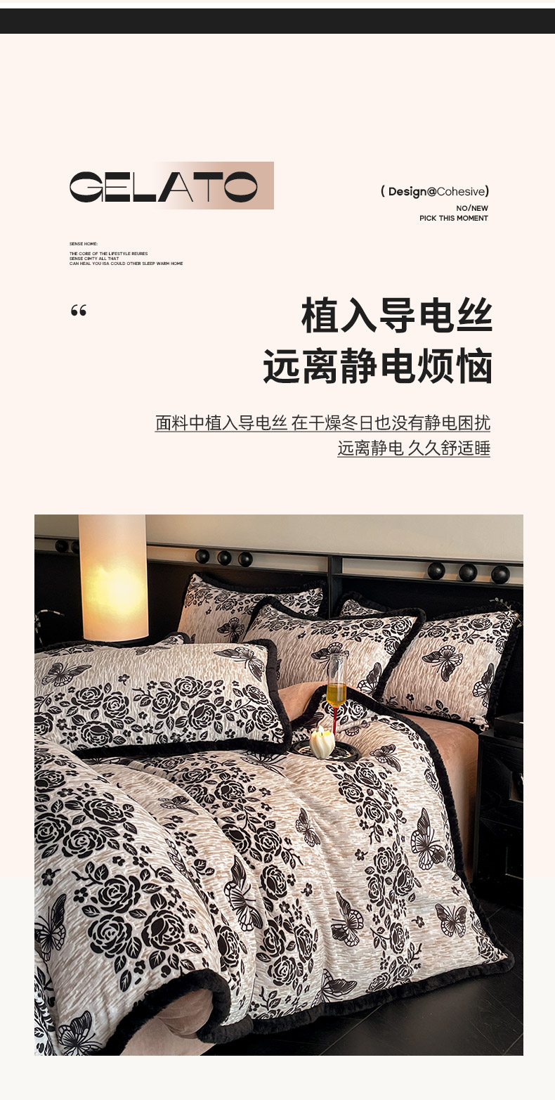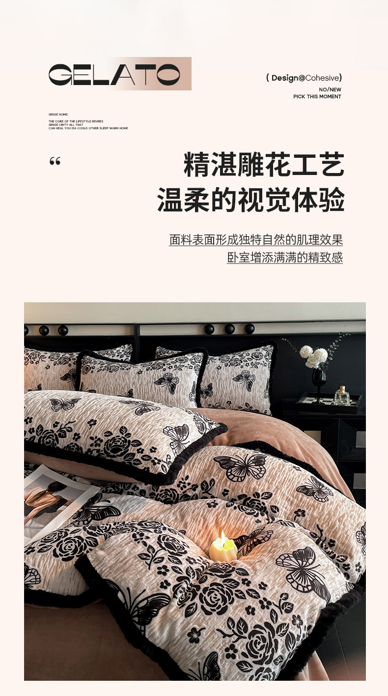 吾诺家居 2025新款美拉德雕花绒黑金系列四件套 北欧风情
