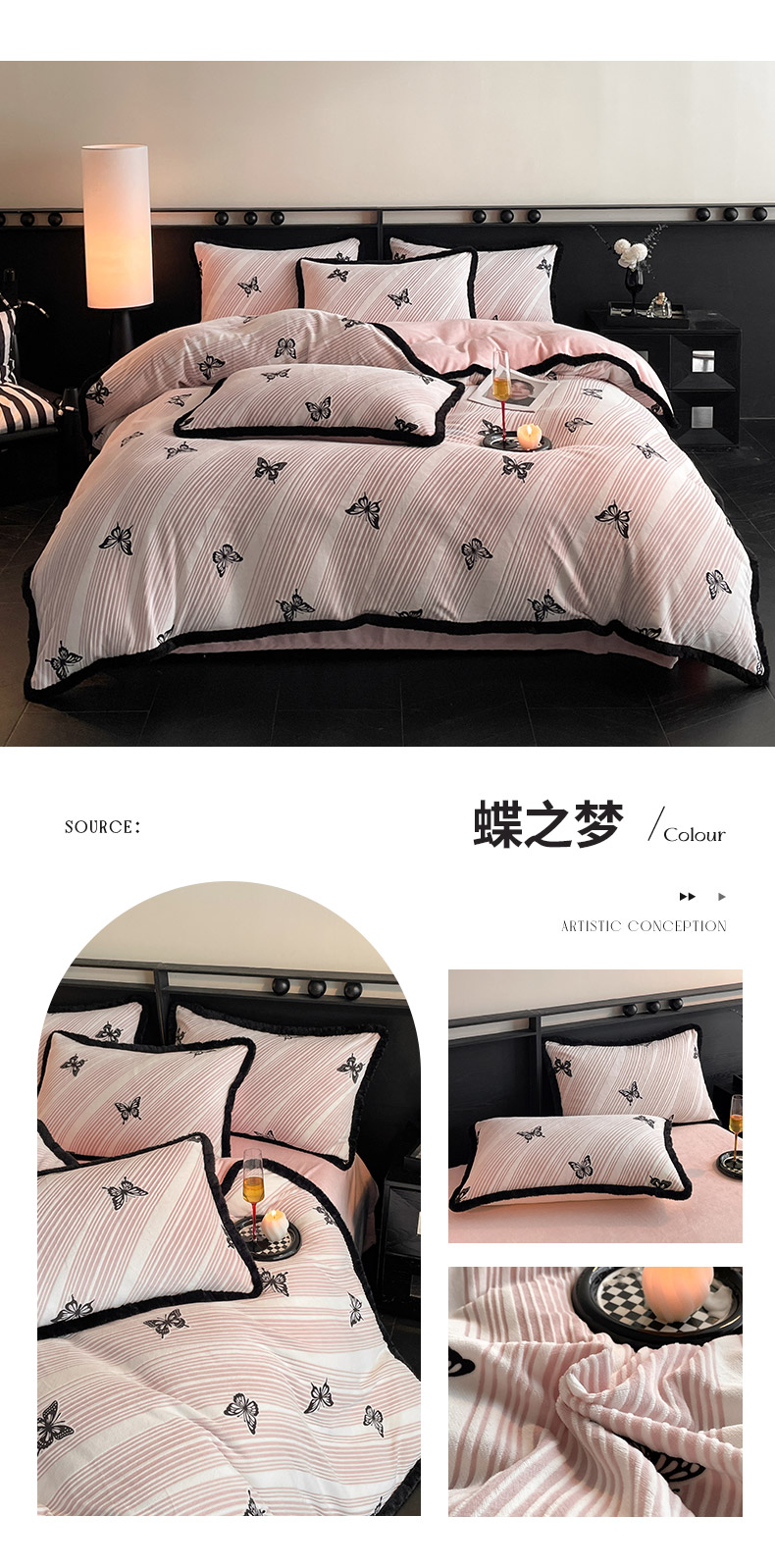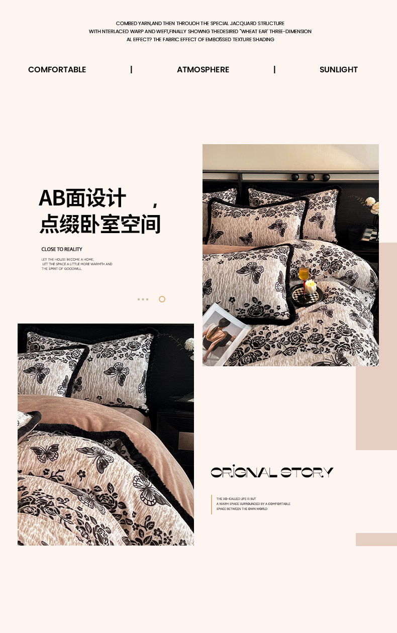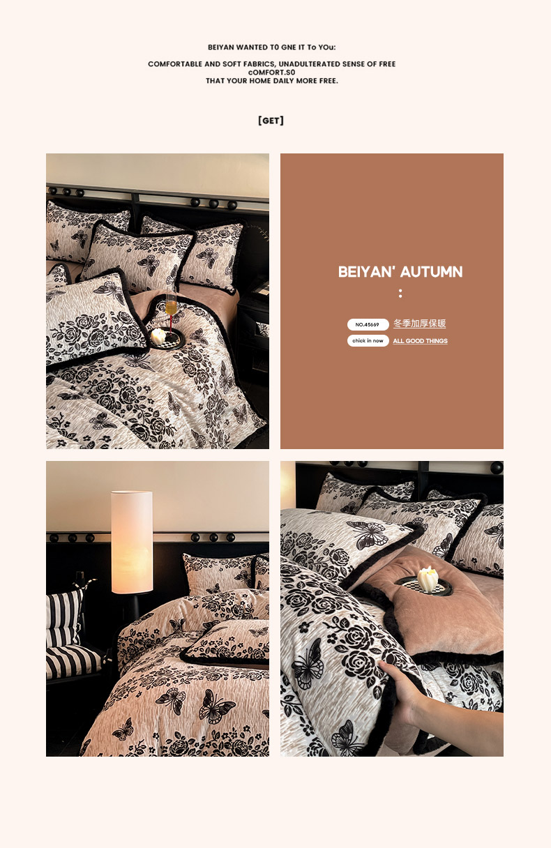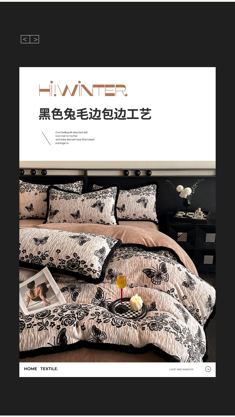商品名称:吾诺家居 2025新款美拉德雕花绒黑金系列四件套 北欧风情