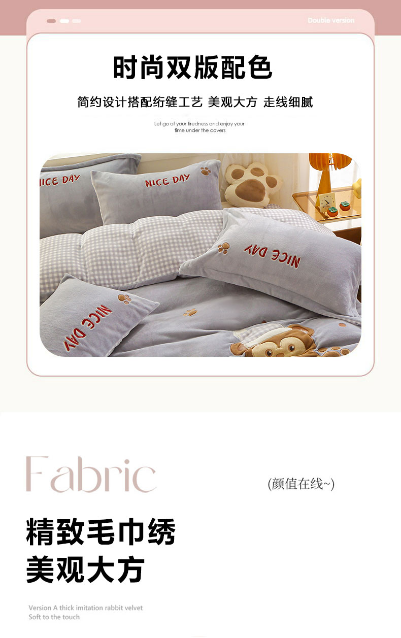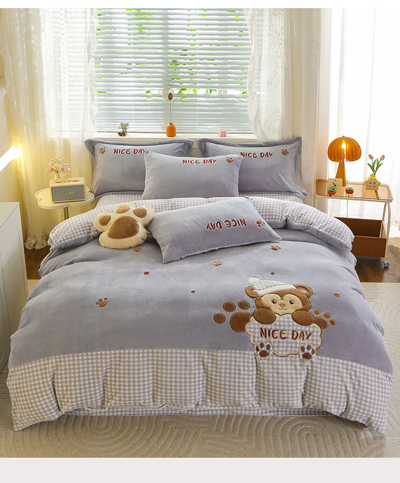 (总)美洲琳 2025新款卡通牛奶绒高克重四件套,戈薇狗-蓝,戈薇狗-浅紫,可爱多-粉,可爱多-紫,奶茶-湖兰,奶茶-水绿,奇奇的礼物-米杏,小困熊-粉,小困熊-驼,小小窝-豆沙,星月小兔-浅粉,熊暖暖-米黄,熊暖暖-浅灰