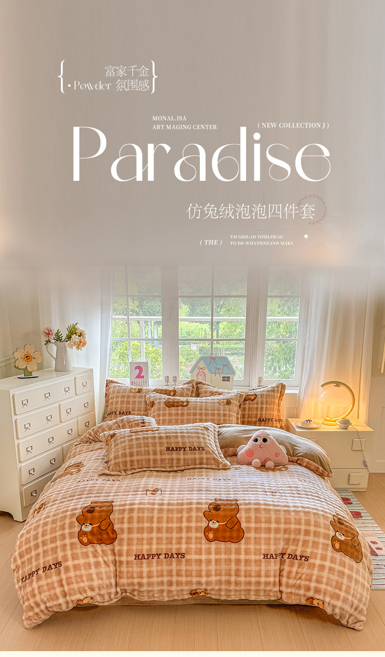 当前位置: 91家纺网 > 商品网购 > 床品套件 > 四件套 > 牛奶绒四件套 > 家贝爱 2025新款加厚牛奶绒泡泡兔毛绒四件套 泡泡绒-萌宠