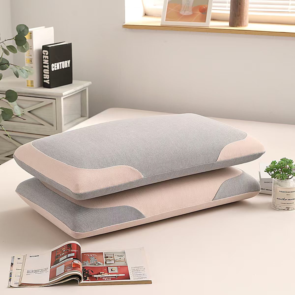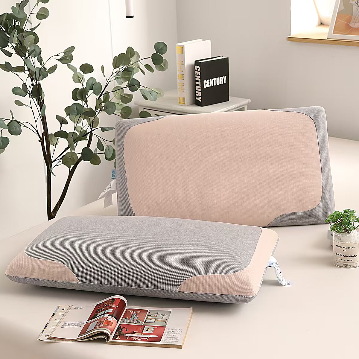 (总)雅诗帛 2025新款生物基水乳枕面包款 枕头枕芯,灰粉/只,豆绿粉/只