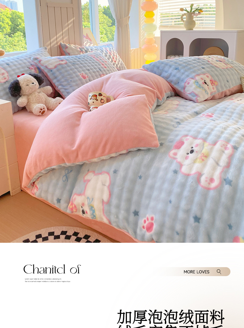 当前位置: 91家纺网 > 商品网购 > 床品套件 > 四件套 > 牛奶绒四件套 > 艾橙 2025新款泡泡牛奶绒加厚保暖印花四件套 比尔狗