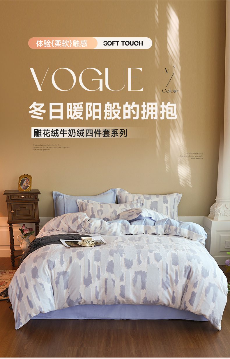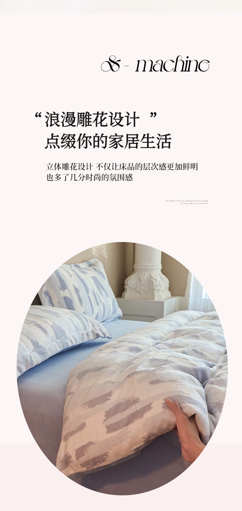 当前位置: 91家纺网 > 商品网购 > 床品套件 > 四件套 > 牛奶绒四件套 > 菡宝 【主推第三批 带质检报告】A类全消光230g雕花绒牛奶绒四件套支持定制定做尺寸 奇想