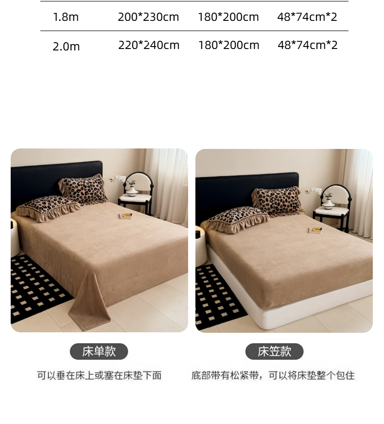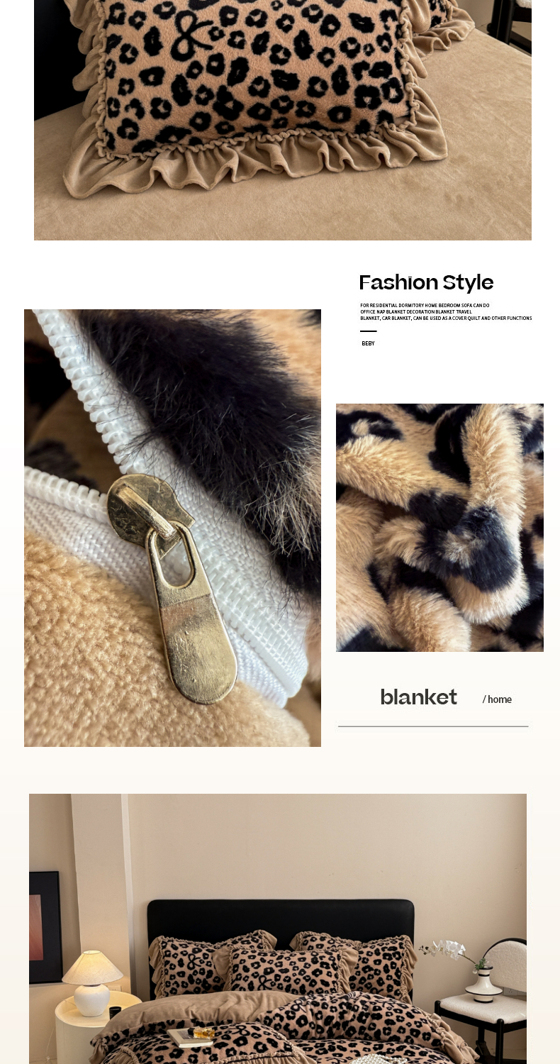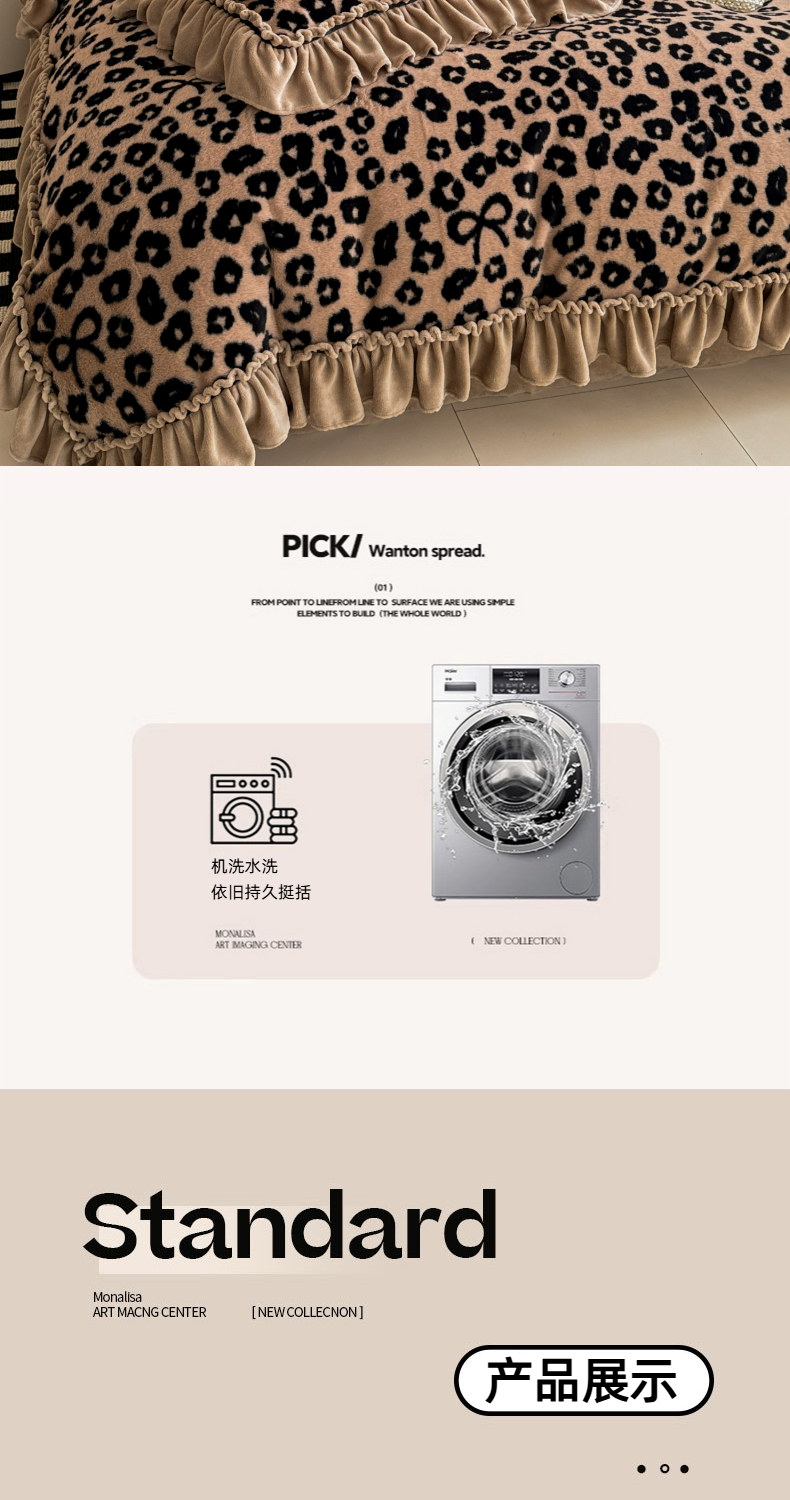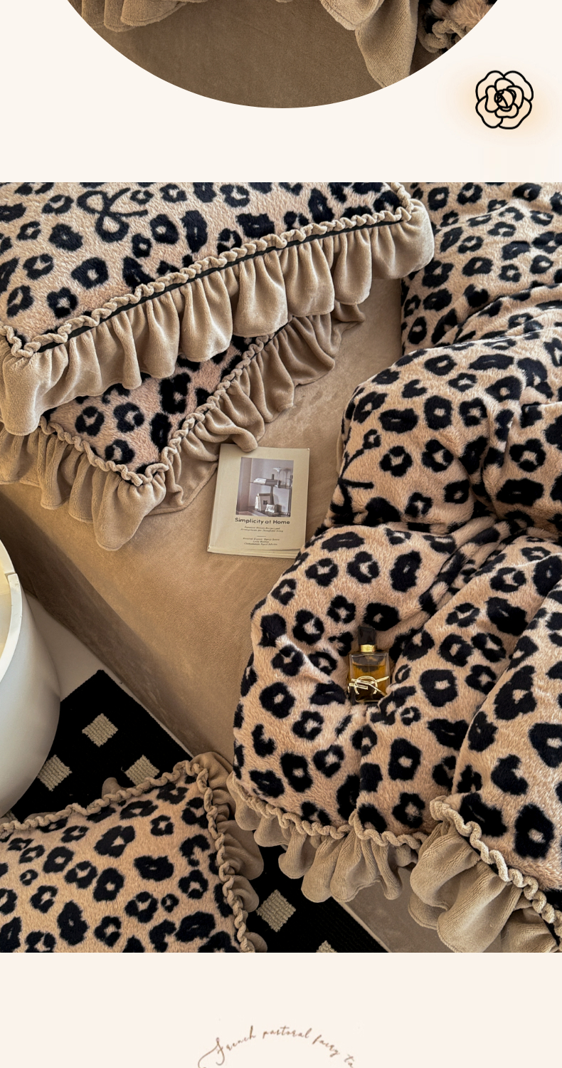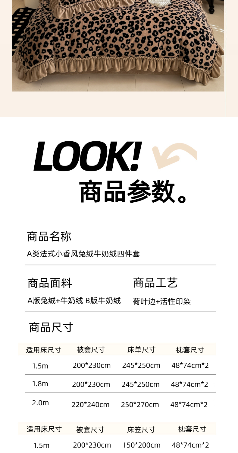 商品名称:米莱家纺 2025新款兔毛绒法式花边四件套 豹纹-咖