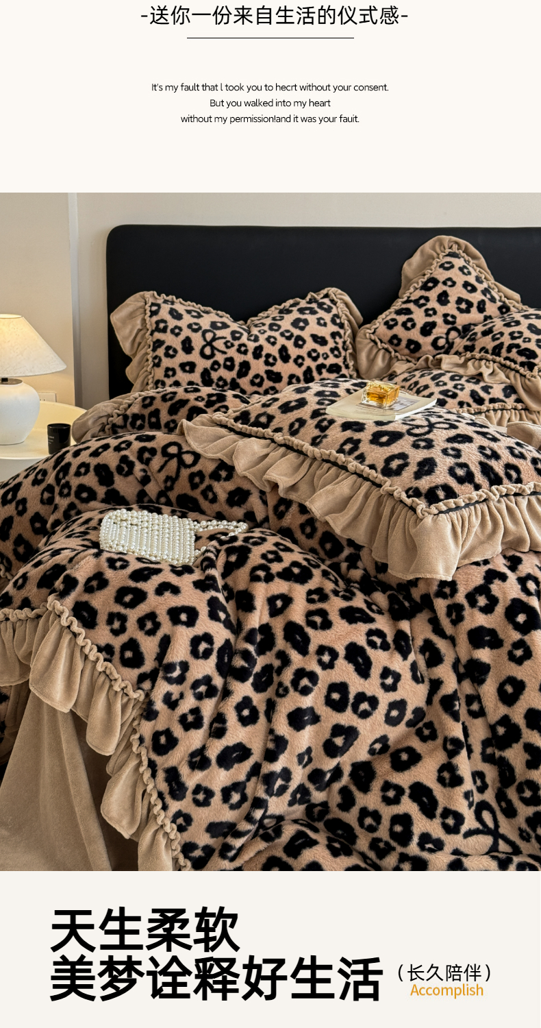 米莱家纺 2025新款兔毛绒法式花边四件套 豹纹-咖