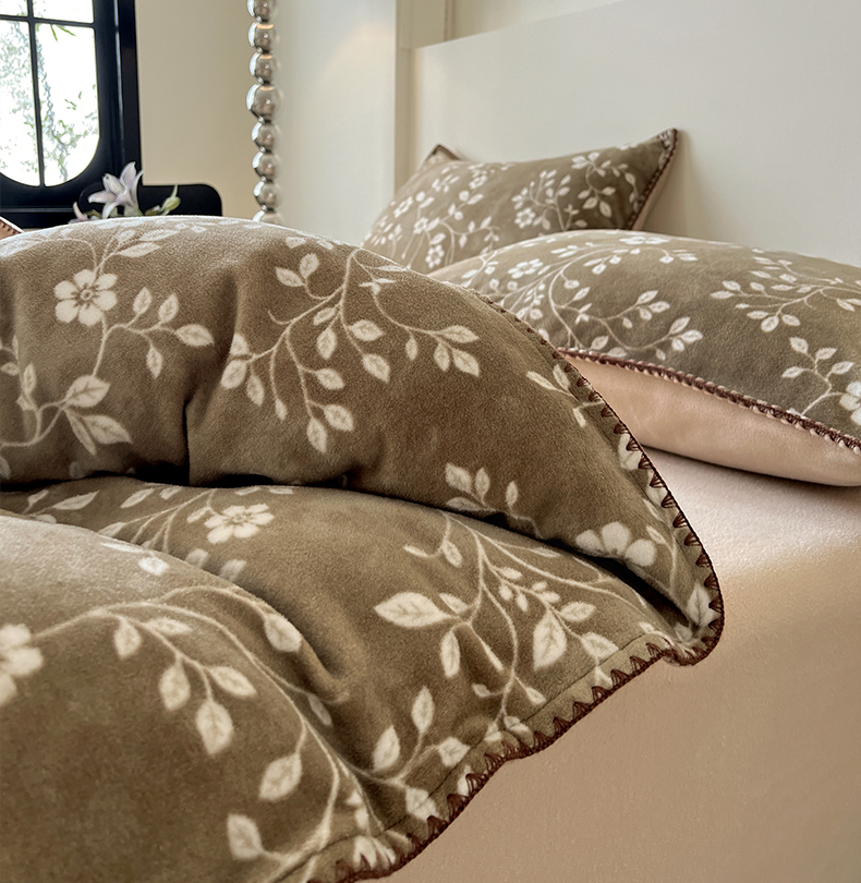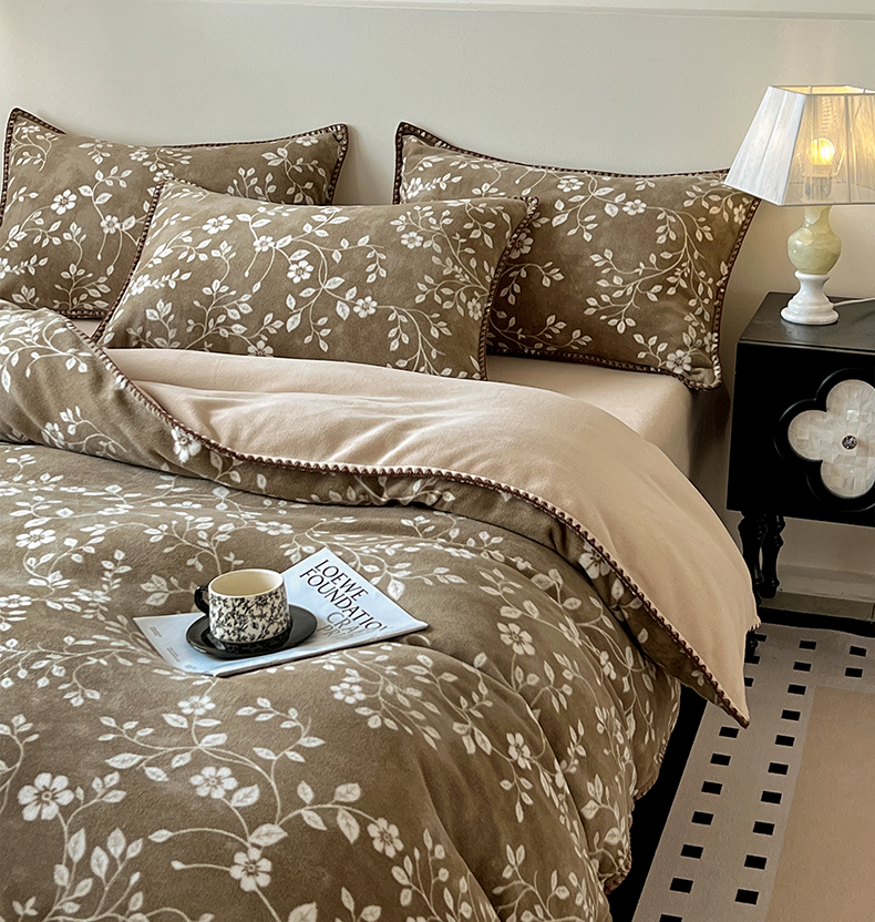 忆生活家纺 2025秋冬新品软糯缇肤绒印花贝壳边四件套 南笙-咖