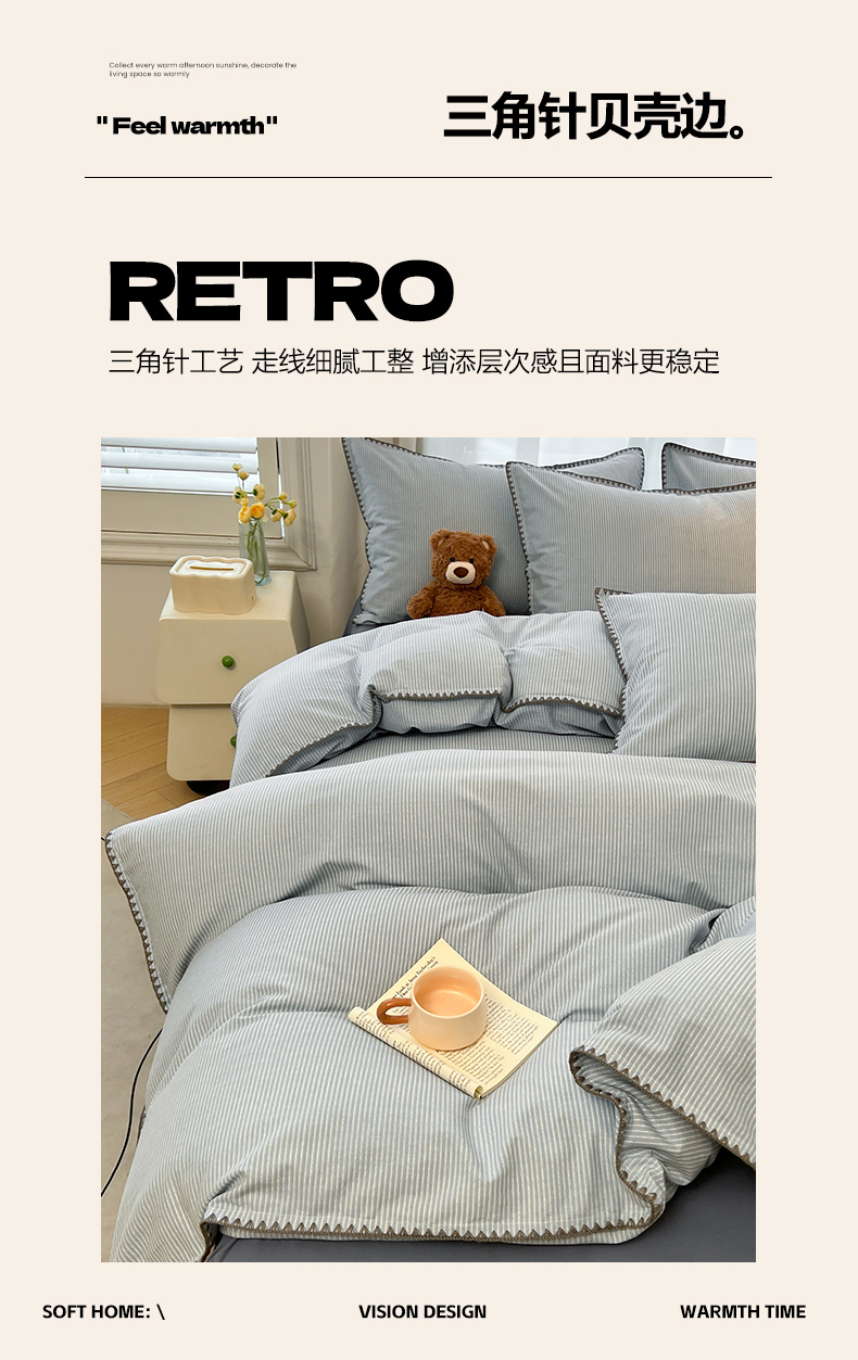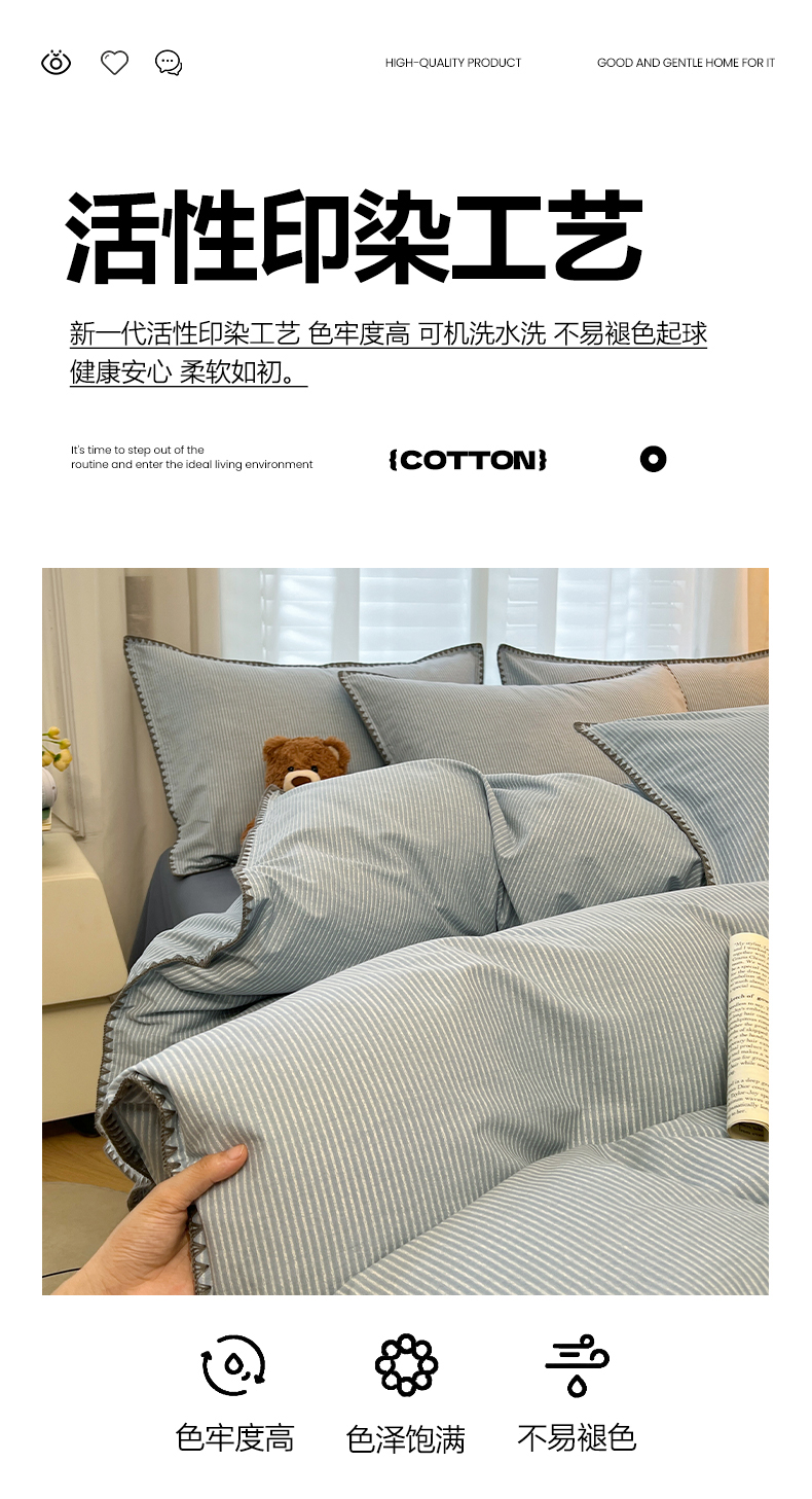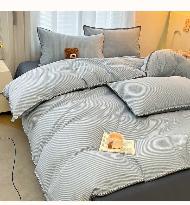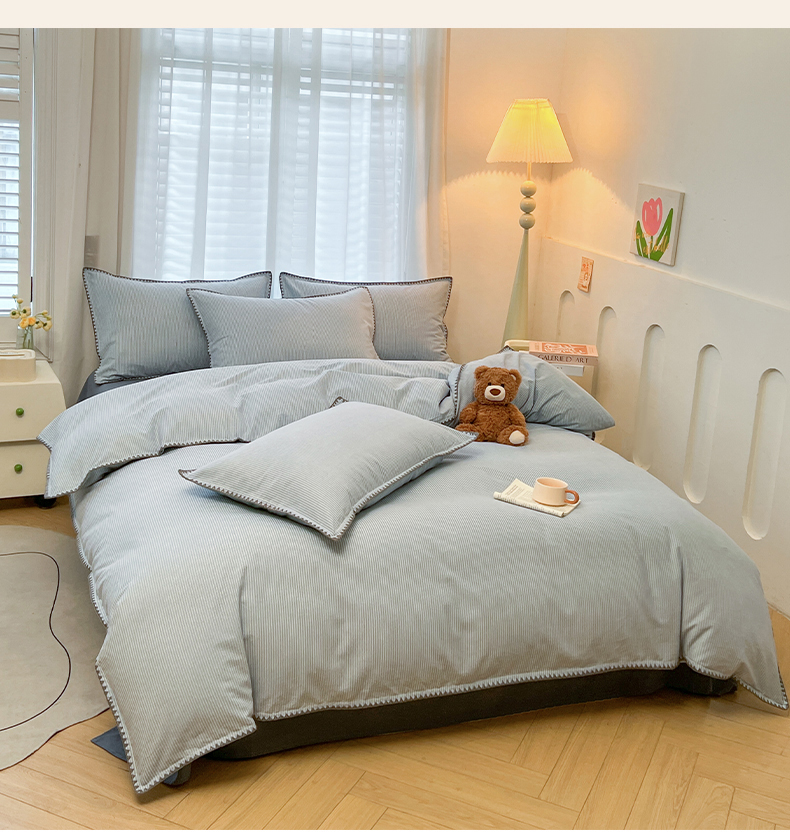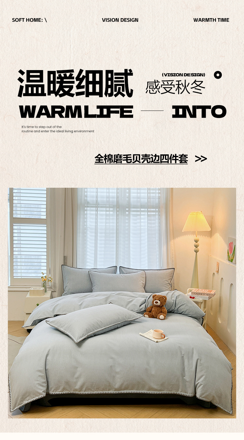 莱茵家居 2025新款全棉磨毛贝壳边四件套 雾丝-青花蓝