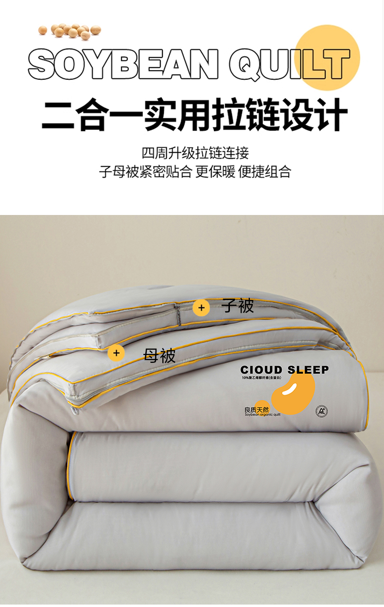商品名称:维洋家纺 2025新款A类提花良质天然大豆子母被子被芯 良质灰