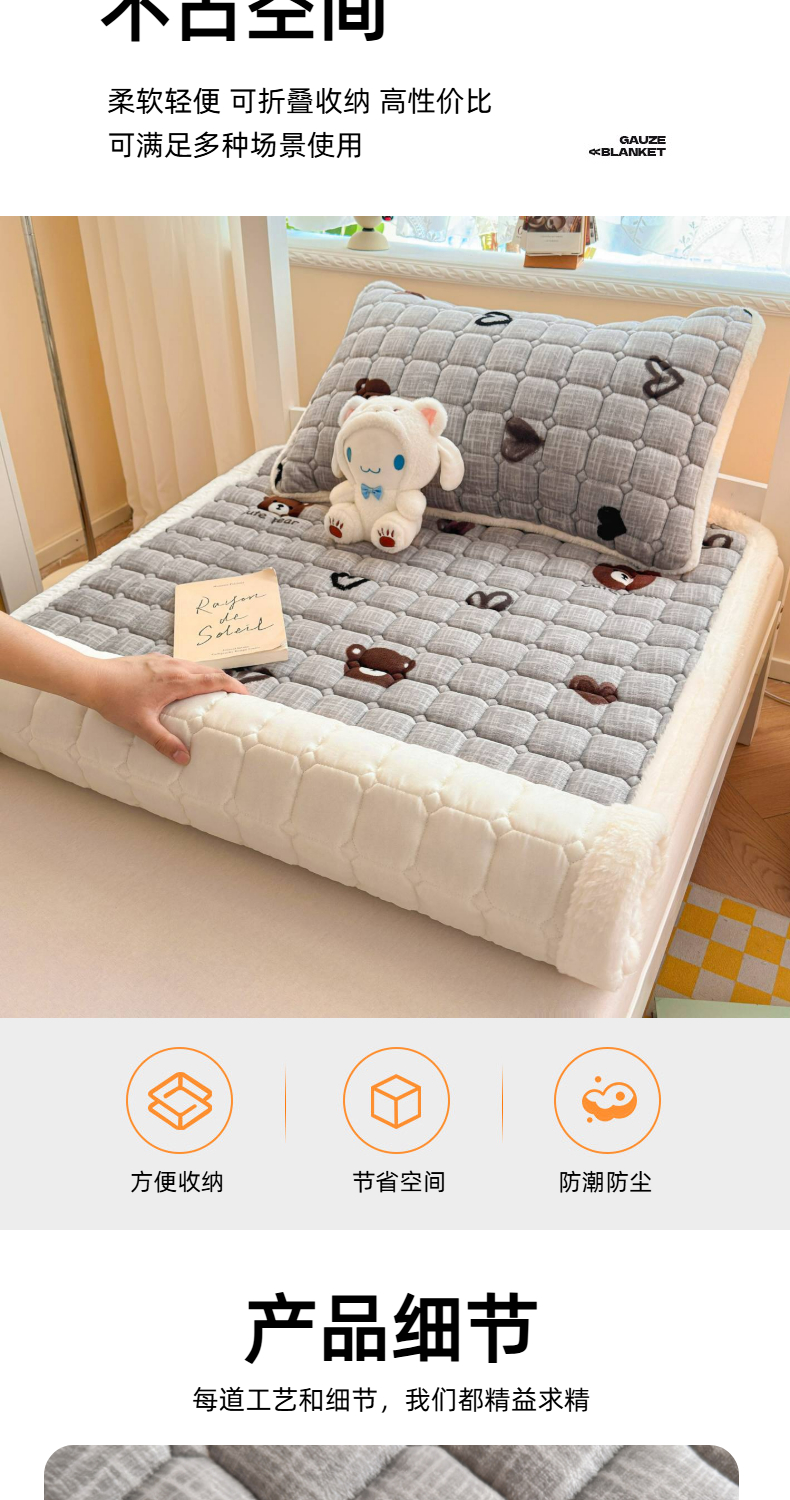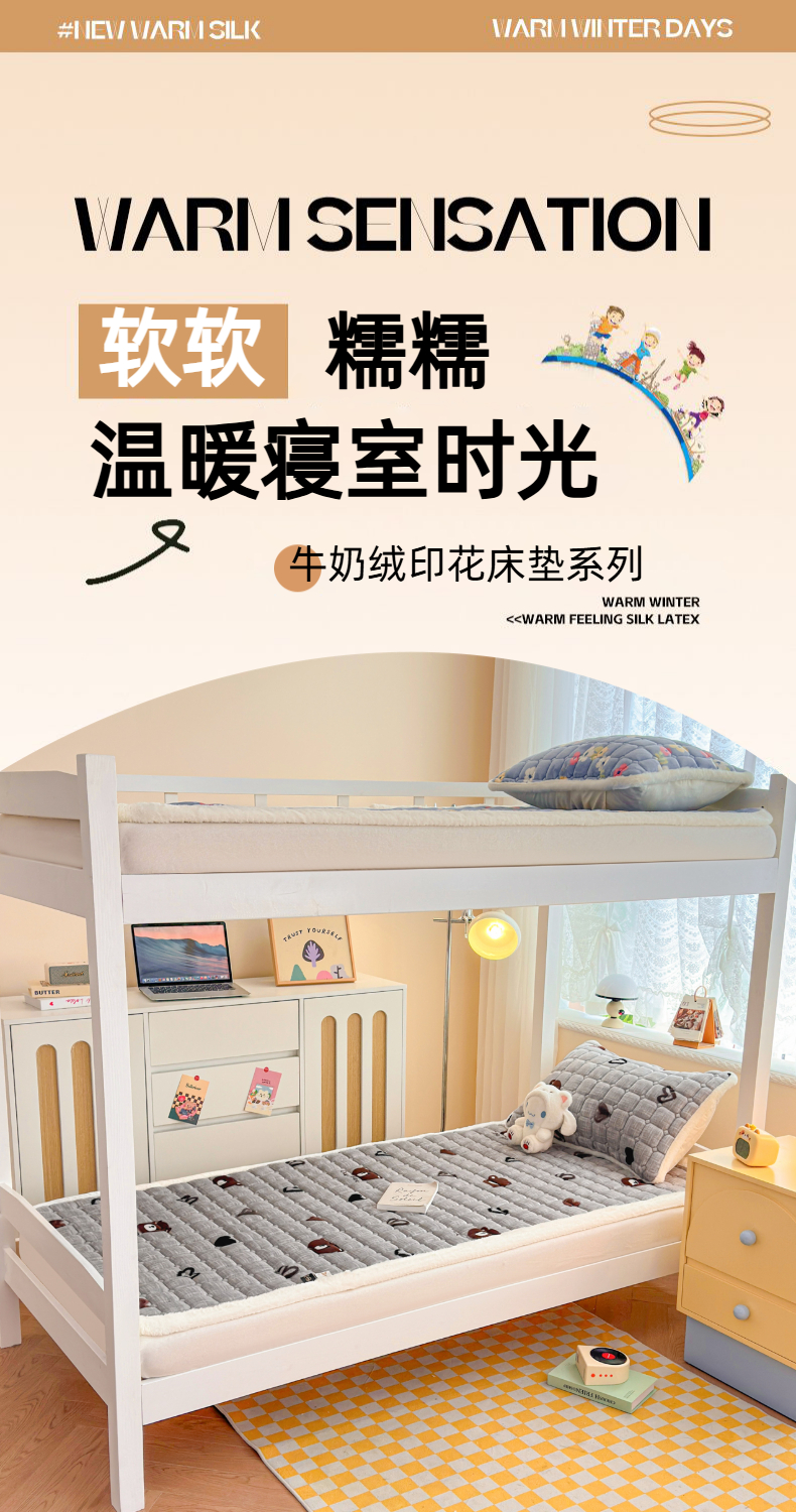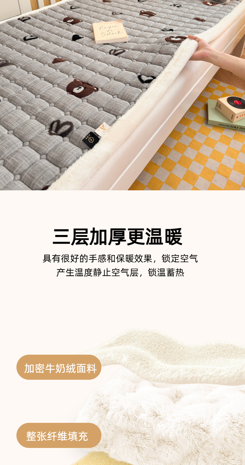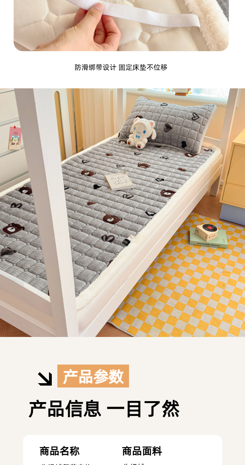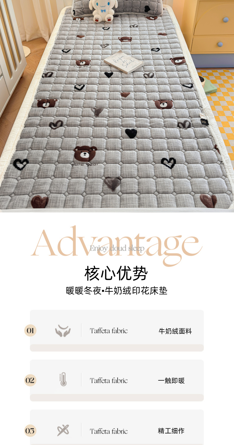 当前位置: 91家纺网 > 商品网购 > 床垫/床褥 > 普通床垫 > 爱屋及屋 2025新款牛奶绒印花床垫-宿舍床 幸运小熊-灰