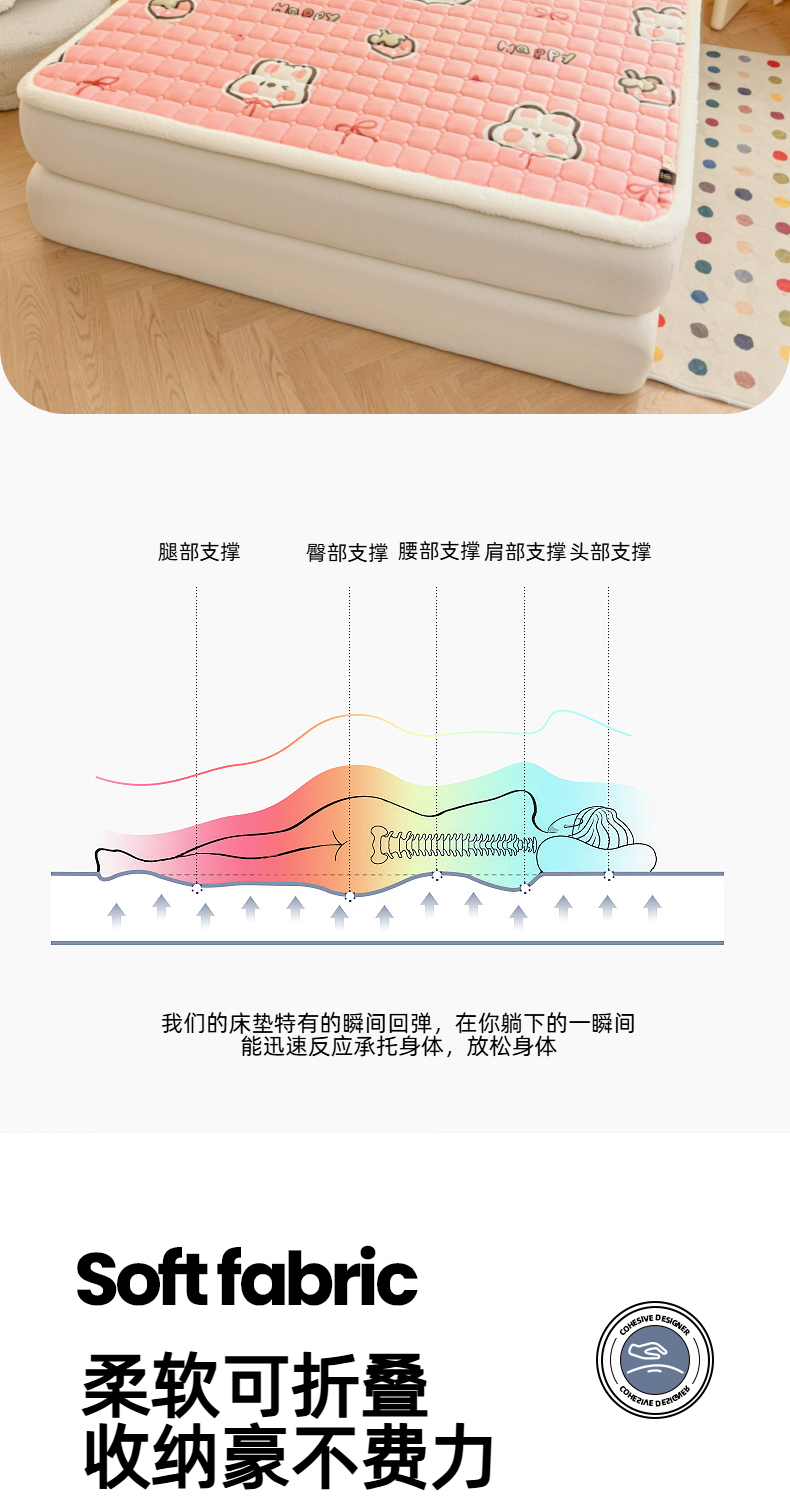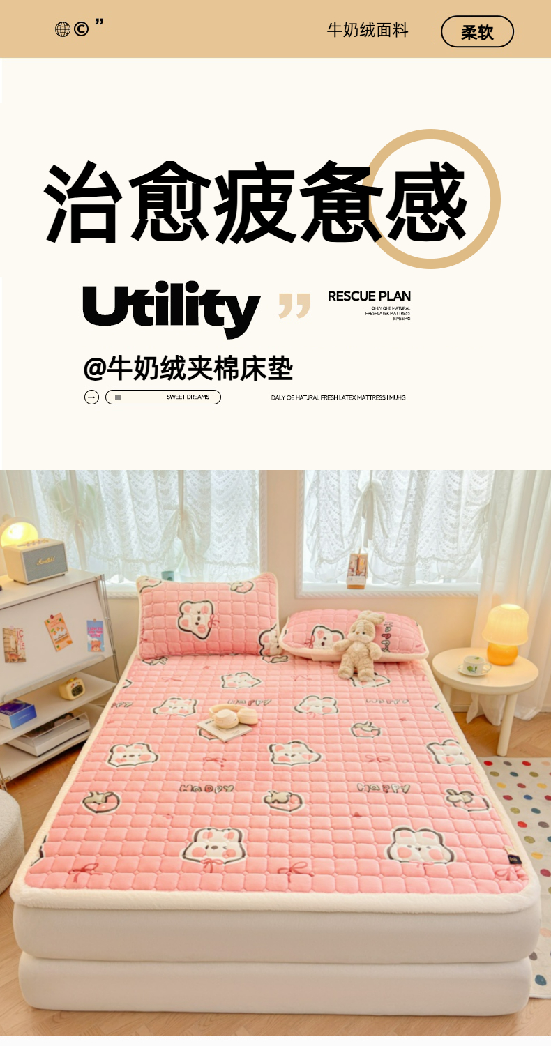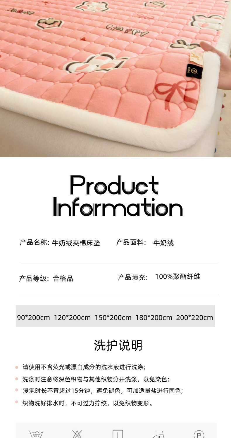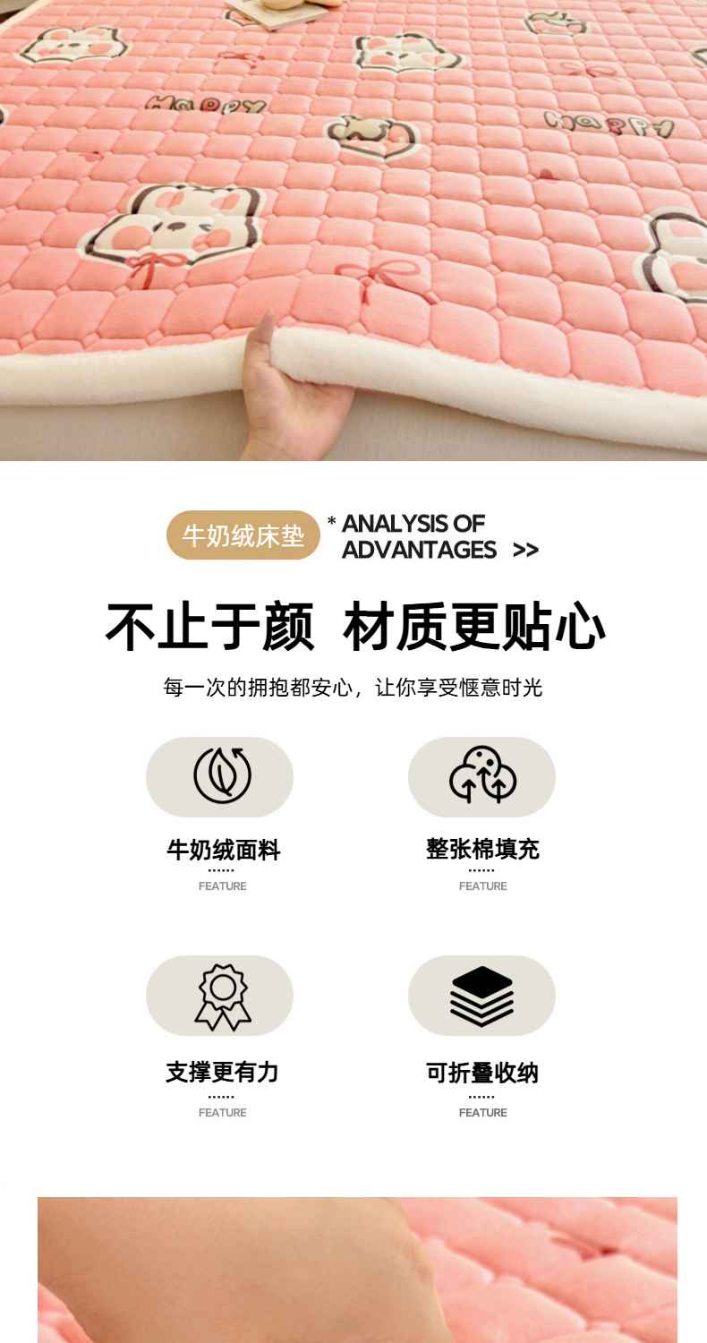 当前位置: 91家纺网 > 商品网购 > 床垫/床褥 > 普通床垫 > 爱屋及屋 2025新款牛奶绒印花床垫-大床款 粉色萌兔