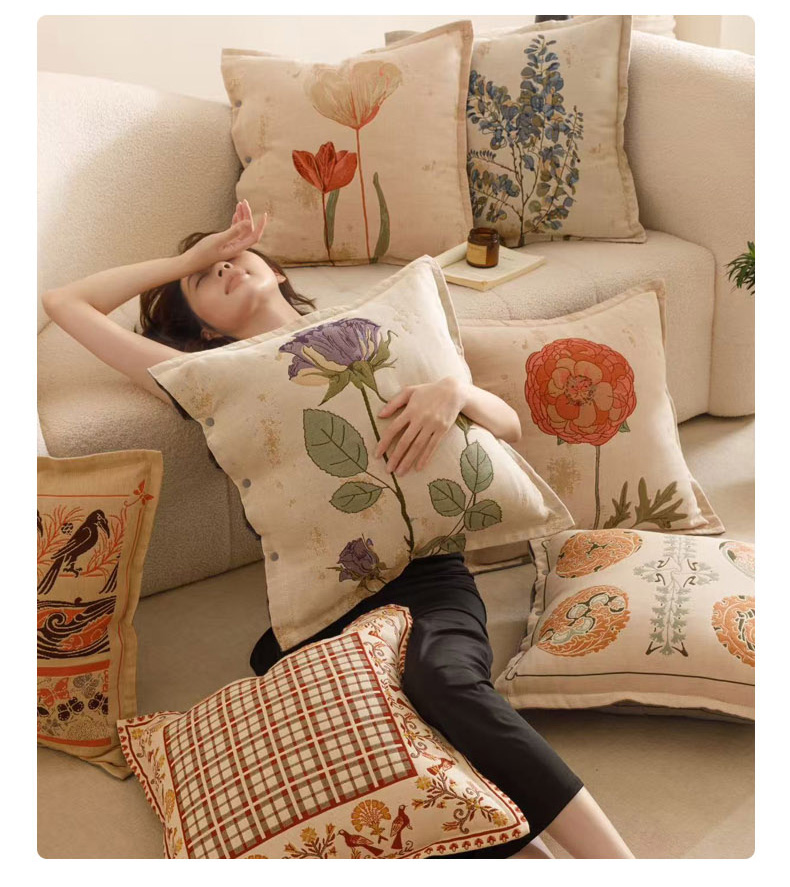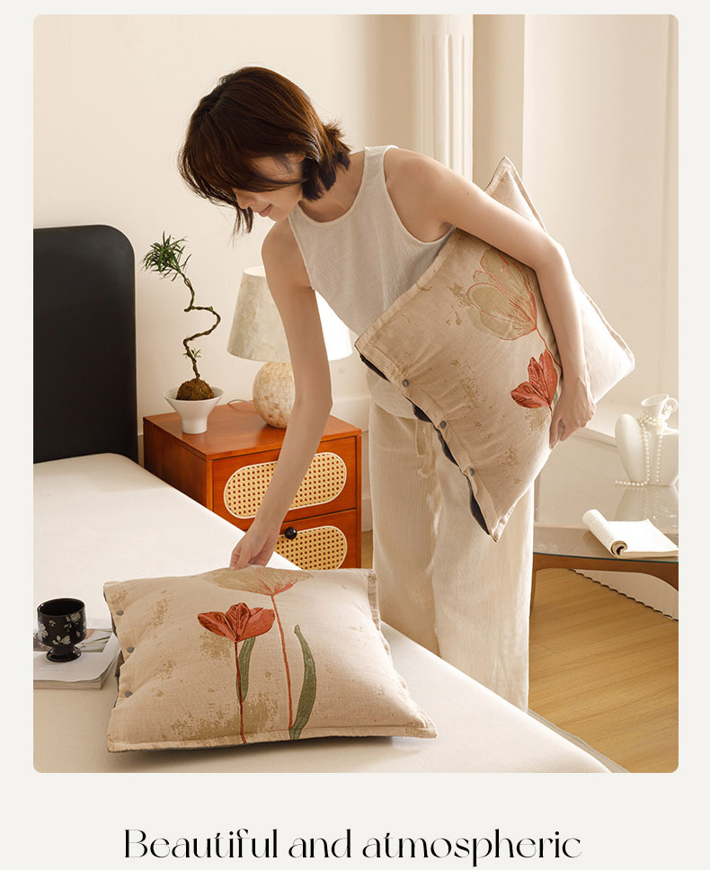 (总)爱港家纺 2025新款全棉纯棉纱布抱枕 靠枕 可拆洗 腰枕 客厅卧室汽车纯棉方枕套