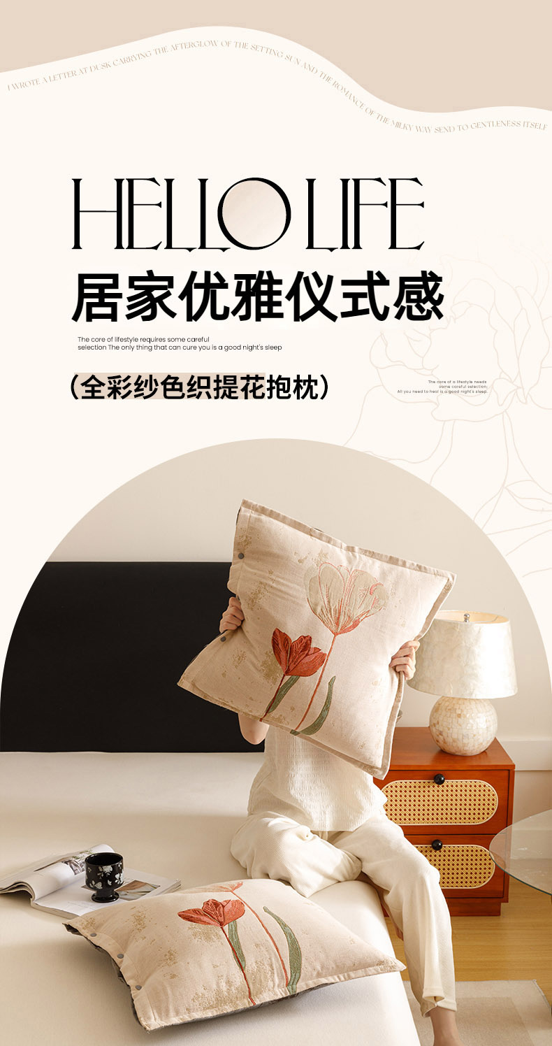 商品名称:(总)爱港家纺 2025新款全棉纯棉纱布抱枕 靠枕 可拆洗 腰枕 客厅卧室汽车纯棉方枕套