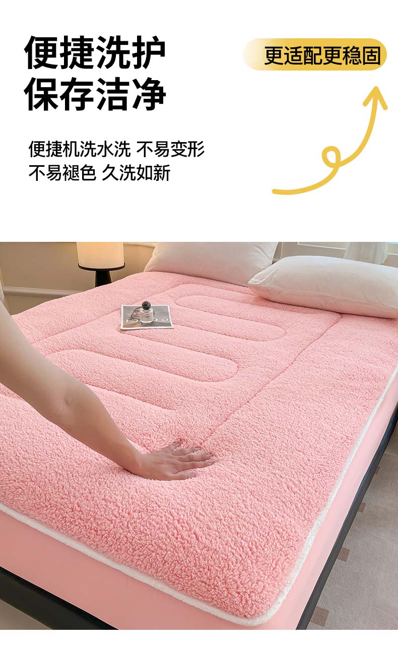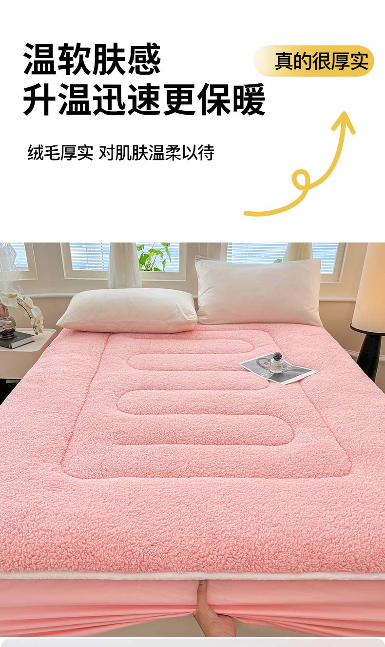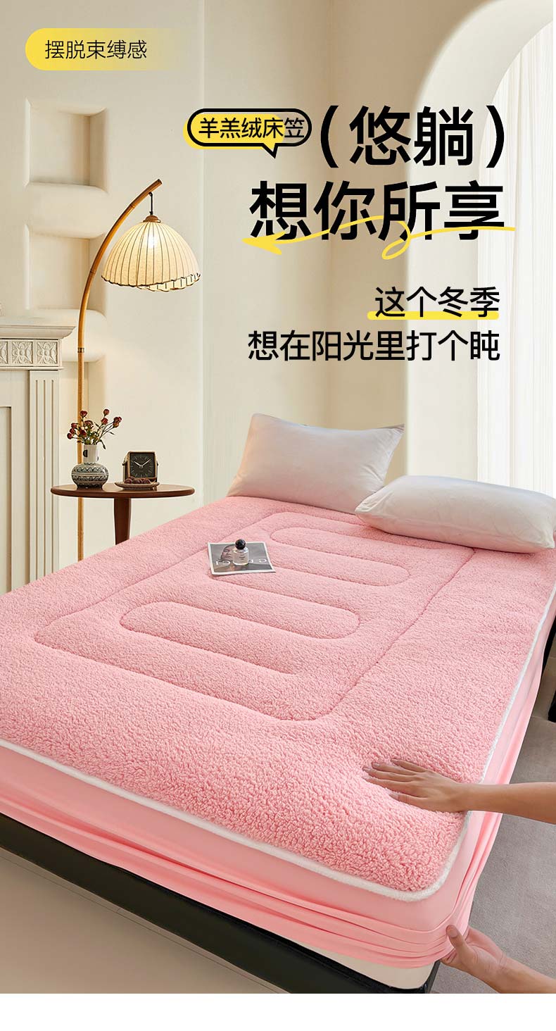 商品名称:悠米悠家 2025新款A类羊羔绒夹棉大豆床笠床垫 粉色