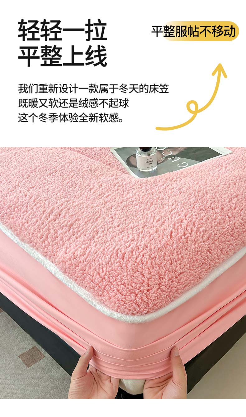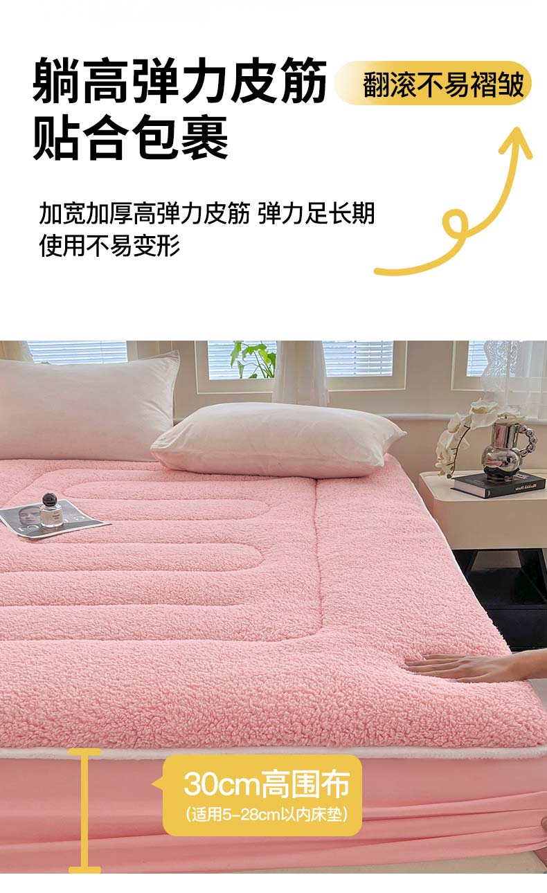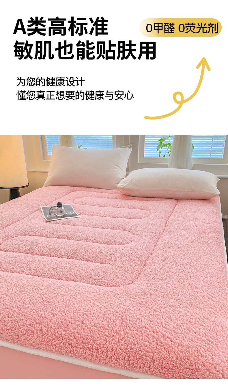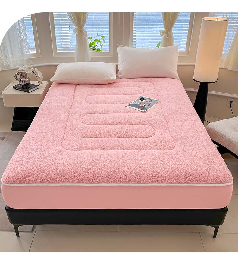 商品名称:悠米悠家 2025新款A类羊羔绒夹棉大豆床笠床垫 粉色