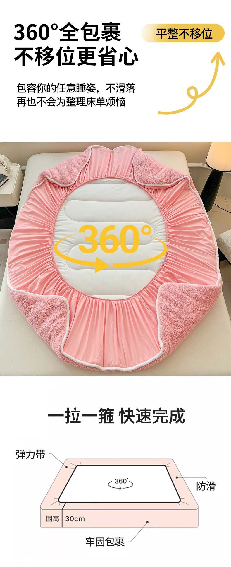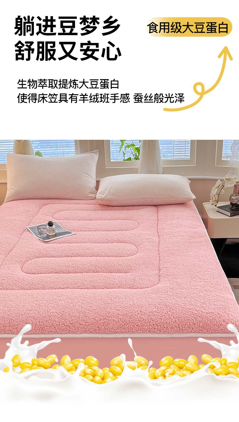 (总)悠米悠家 2025新款A类羊羔绒夹棉大豆床笠床垫,白色,粉色,灰色,橘色,咖色
