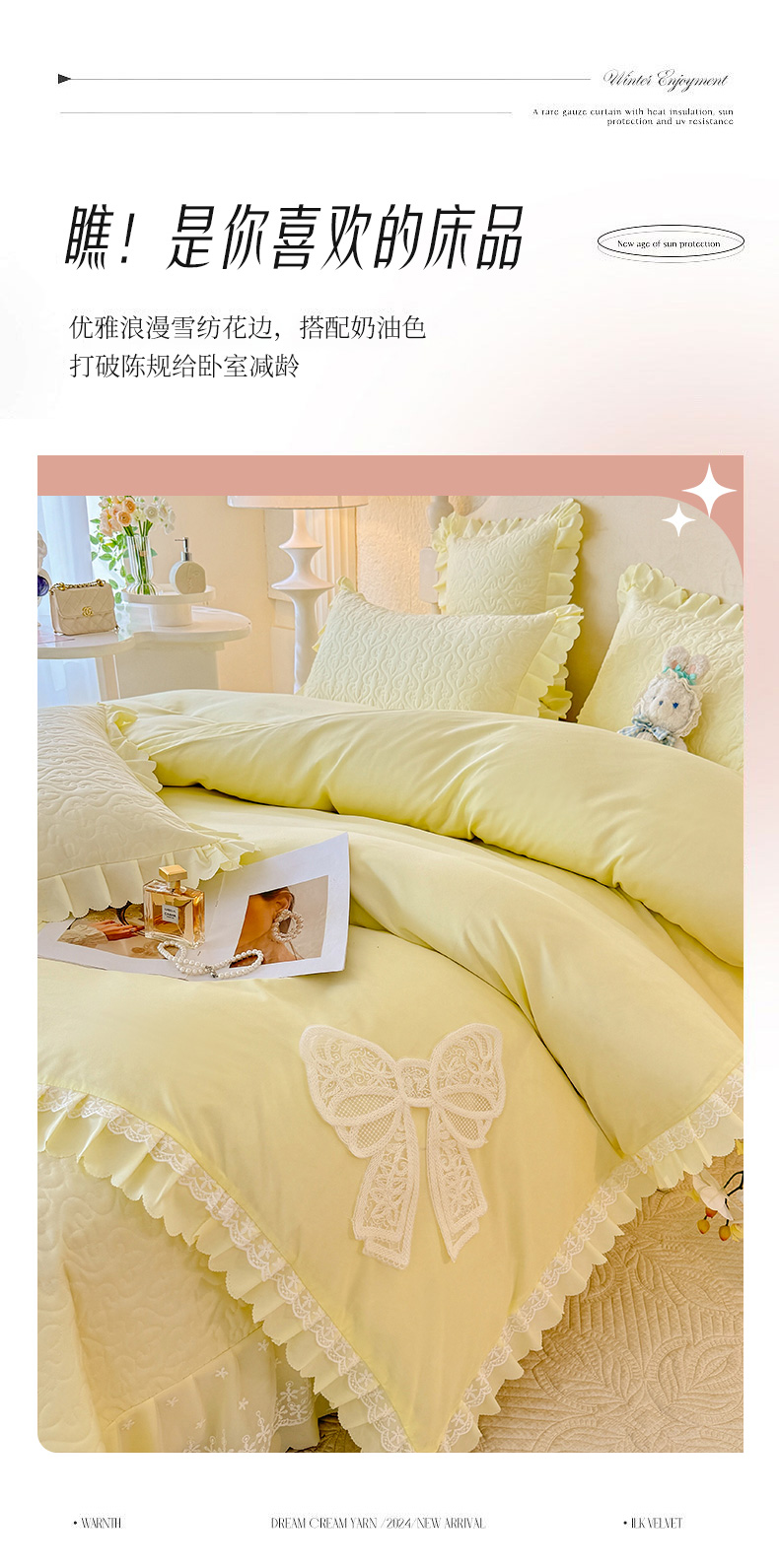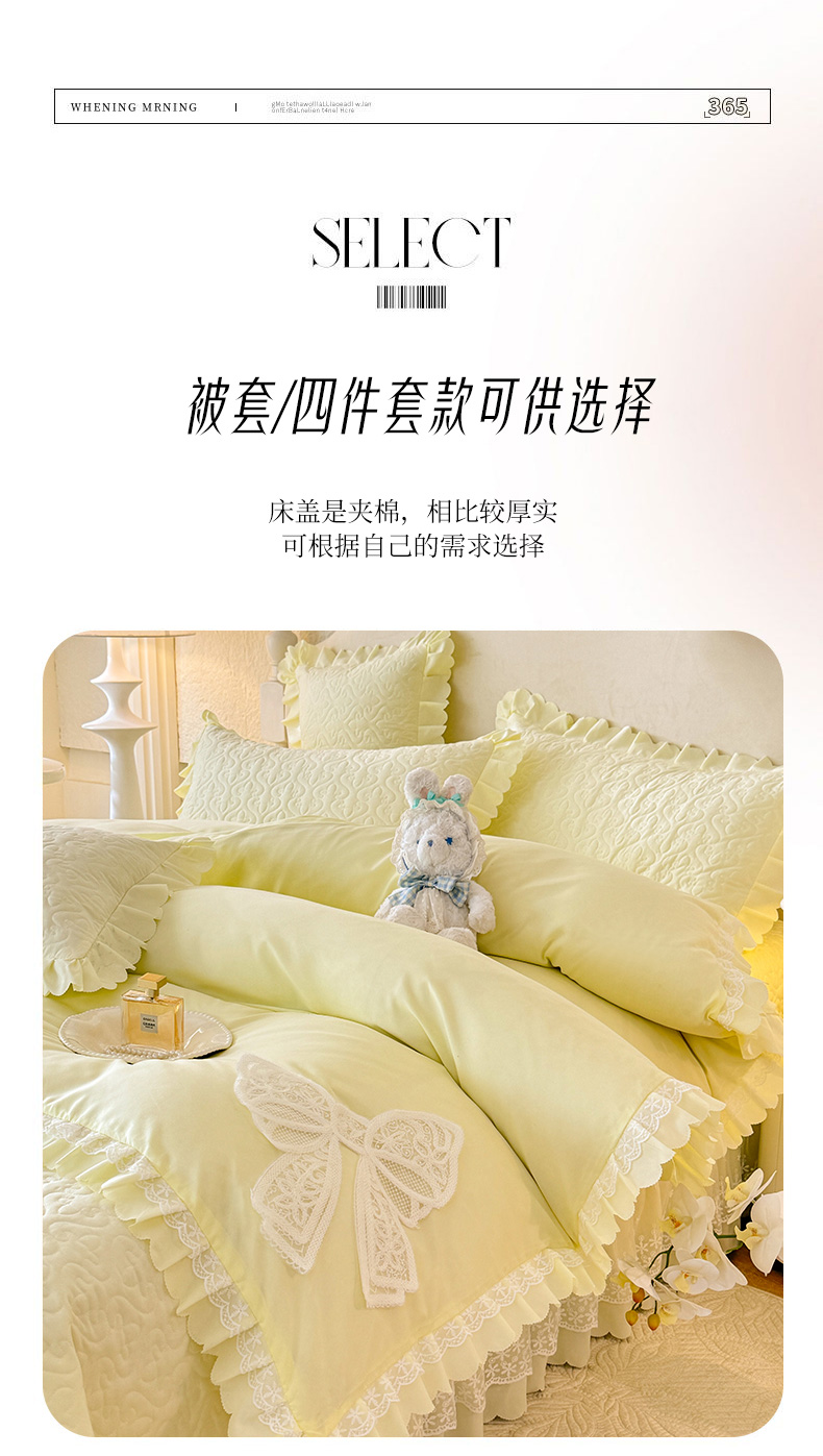 当前位置: 91家纺网 > 商品网购 > 床品套件 > 四件套 > 其它四件套 > 后庭寝室 2025新款法式公主风亲肤床盖四件套-蝶恋系列 蝶恋-米色