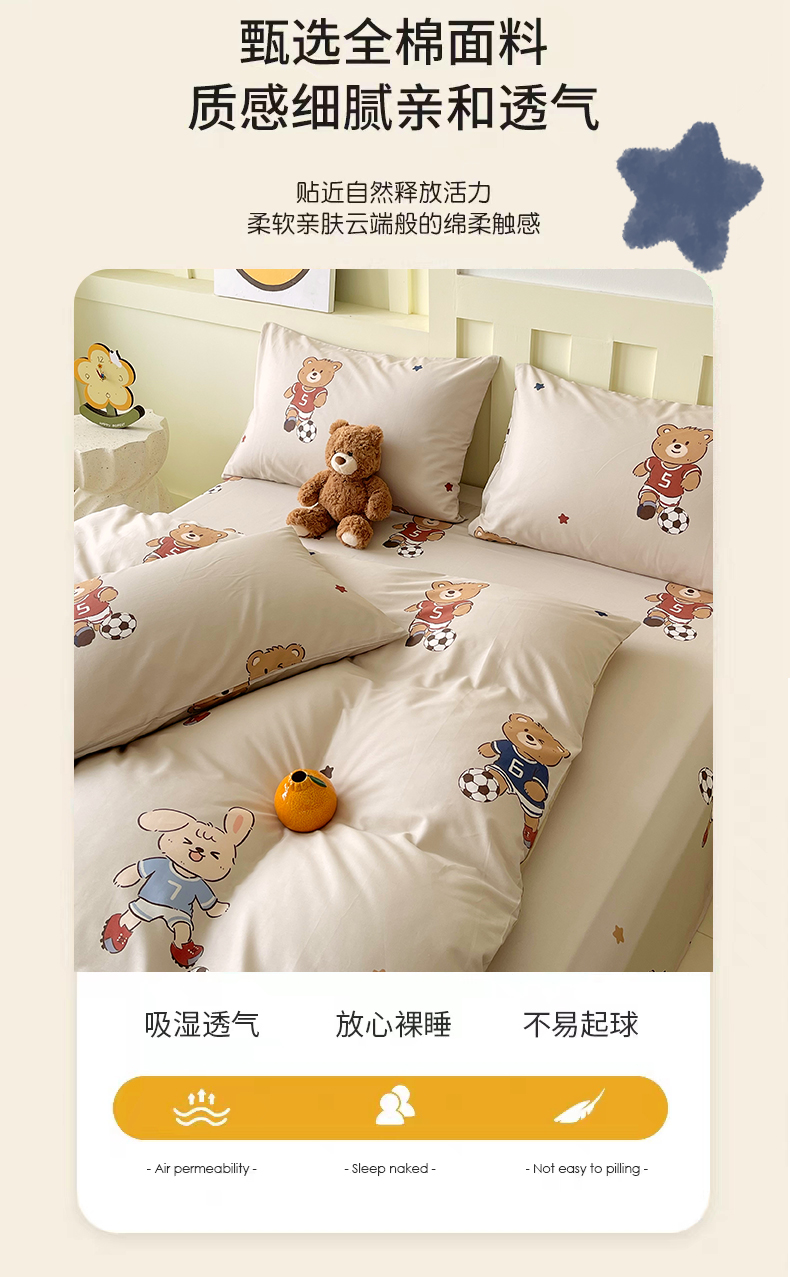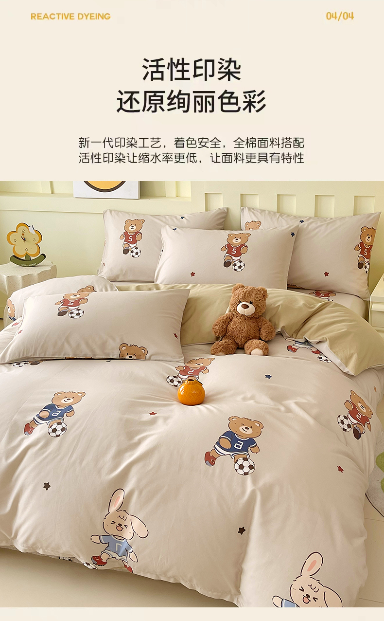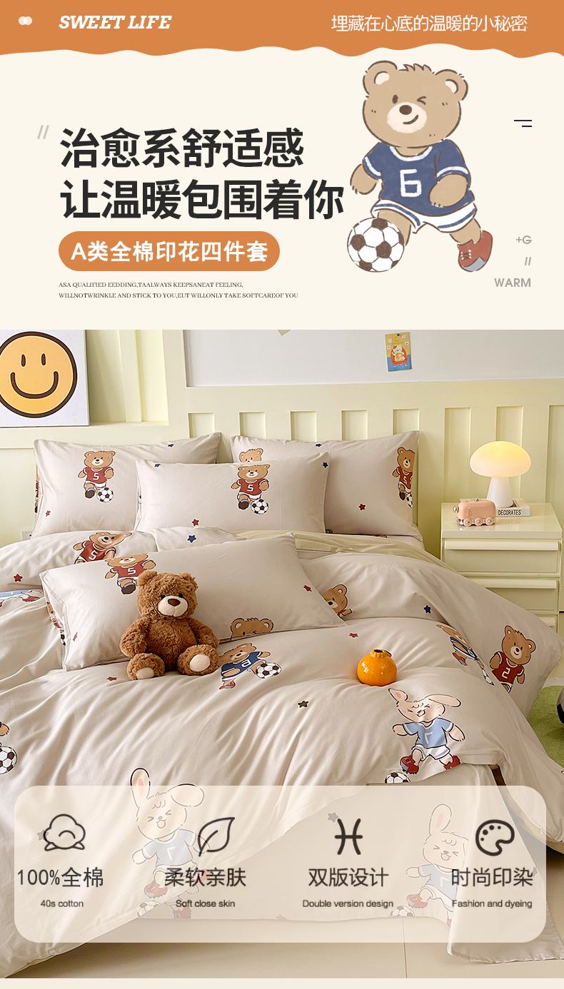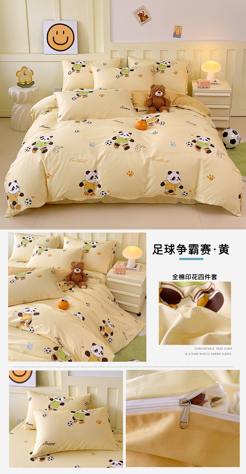 当前位置: 91家纺网 > 商品网购 > 床品套件 > 四件套 > 全棉普通四件套 > 金鑫汇家纺 2025新款A类全棉纯棉印花大床图四件套 友谊足球