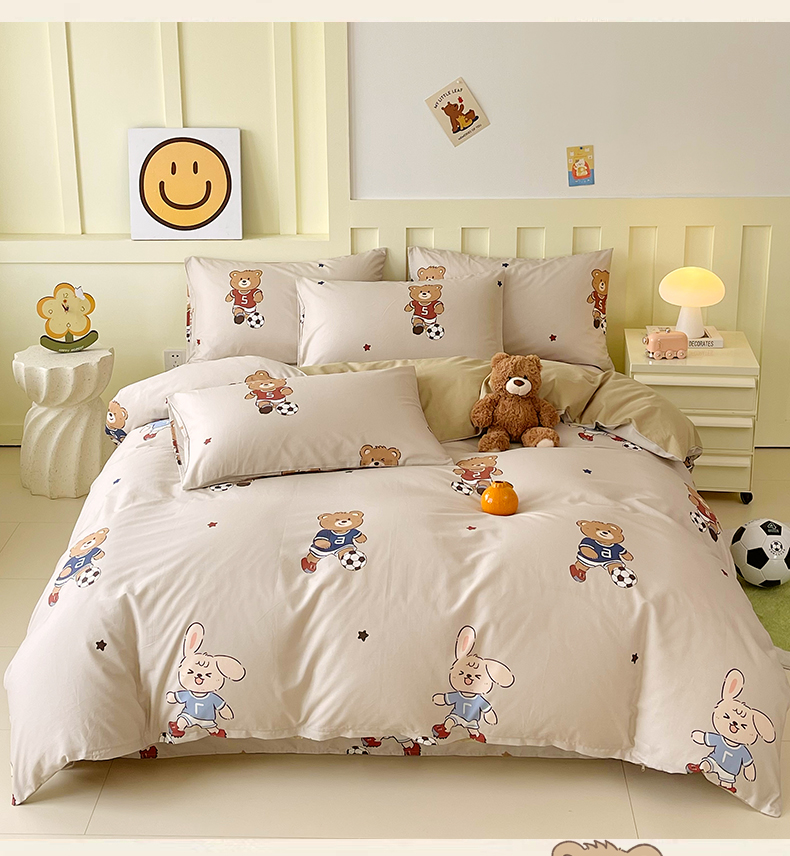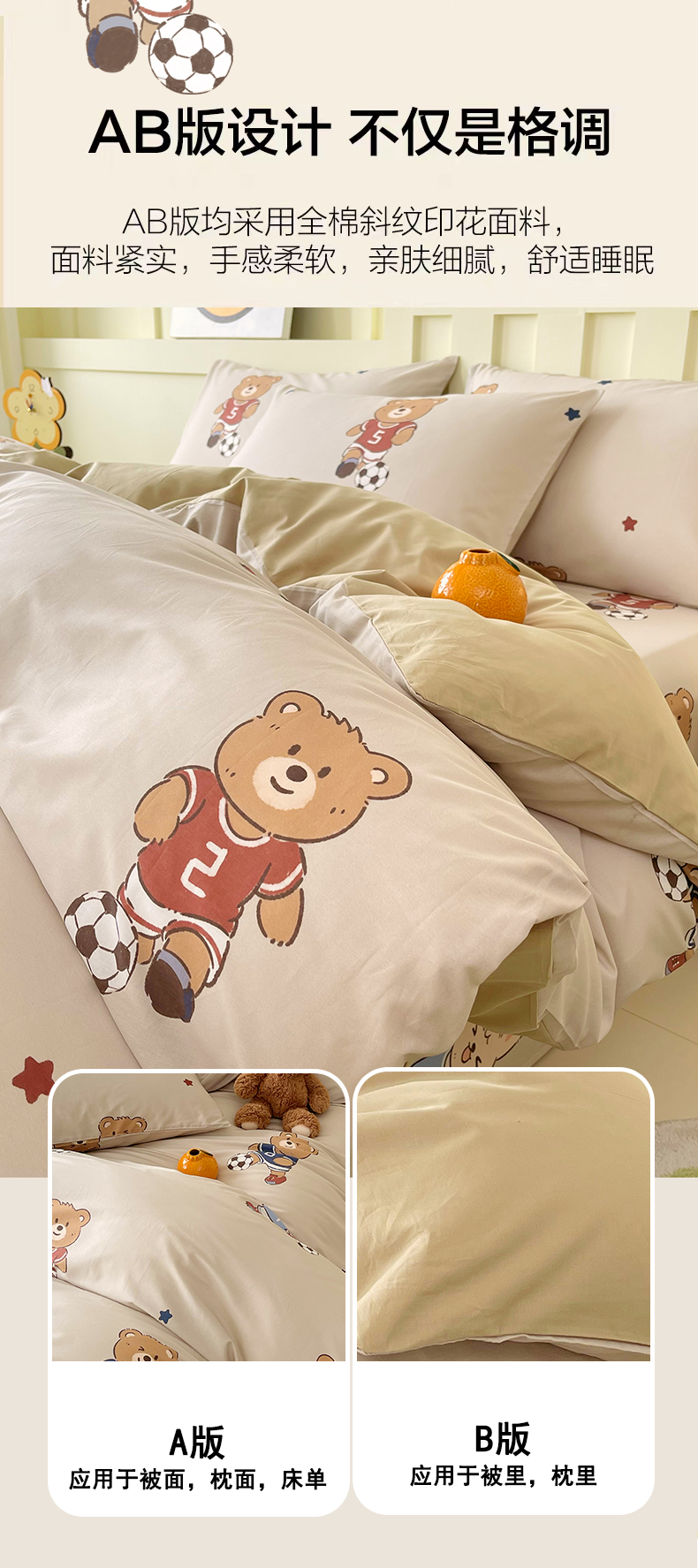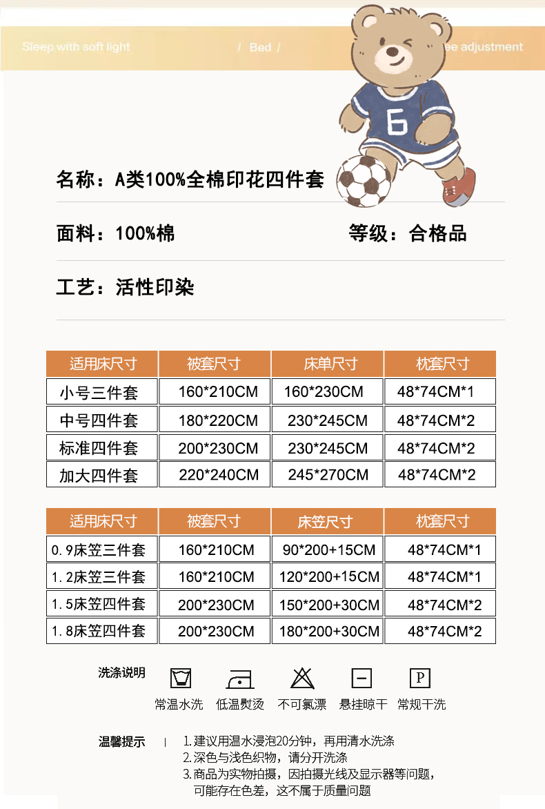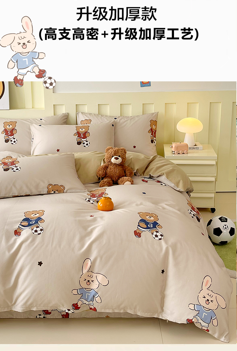 当前位置: 91家纺网 > 商品网购 > 床品套件 > 四件套 > 全棉普通四件套 > 金鑫汇家纺 2025新款A类全棉纯棉印花大床图四件套 友谊足球
