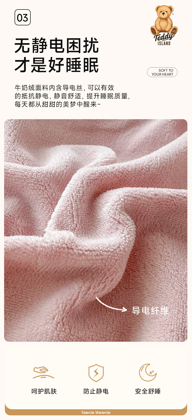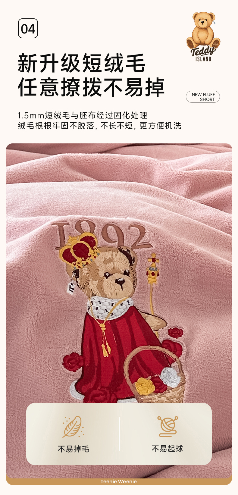 商品名称:泰迪爱兰Teddy ISLAND 2025新款IP绣花牛奶绒刺绣套件 珊瑚粉+银灰