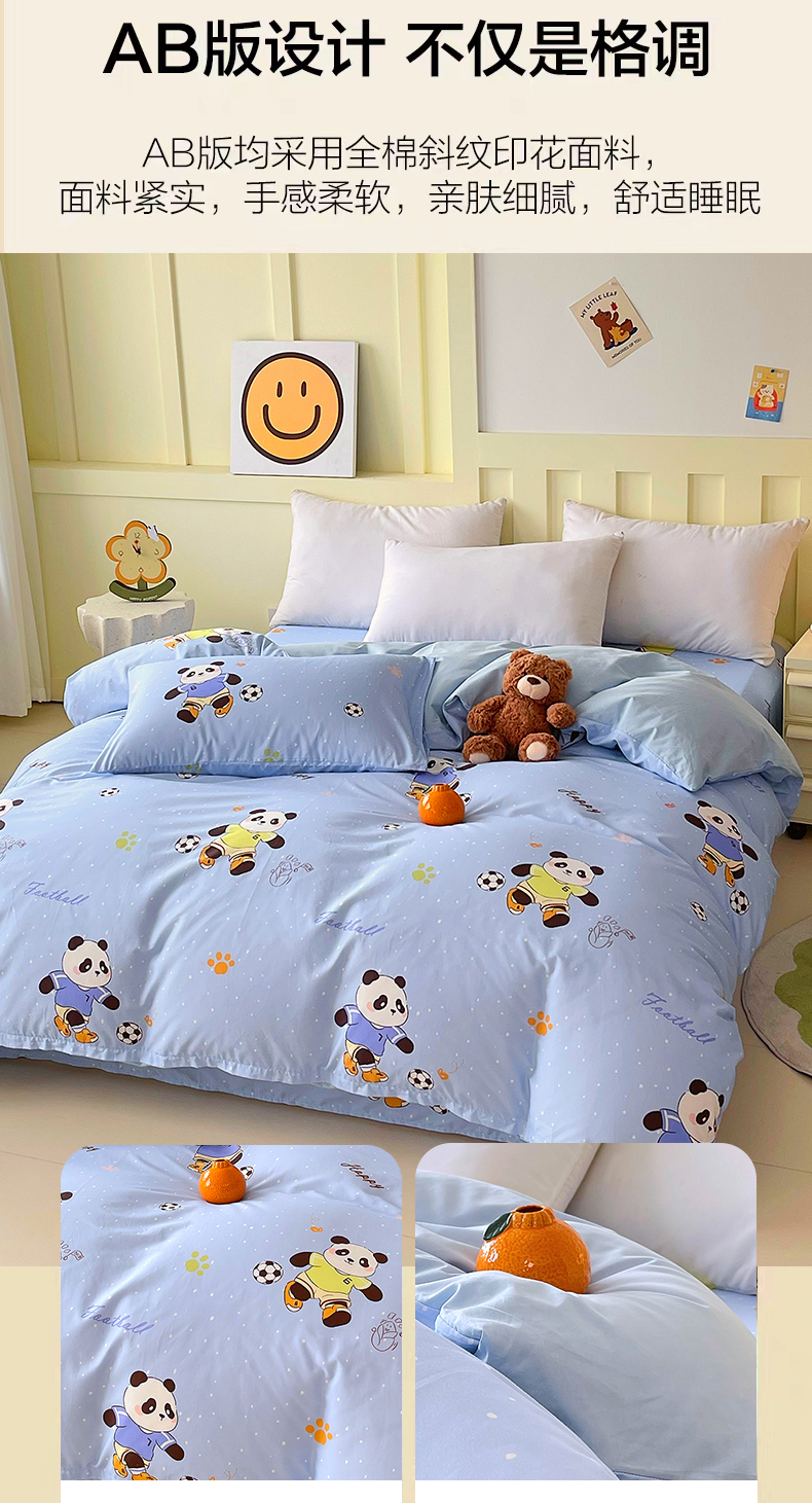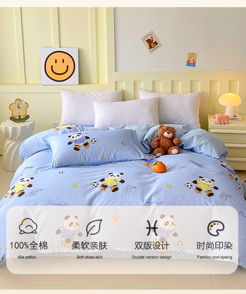 商品名称:金鑫汇家纺 2025新款A类全棉纯棉印花大床图单被套 被套单件 足球争霸赛-蓝