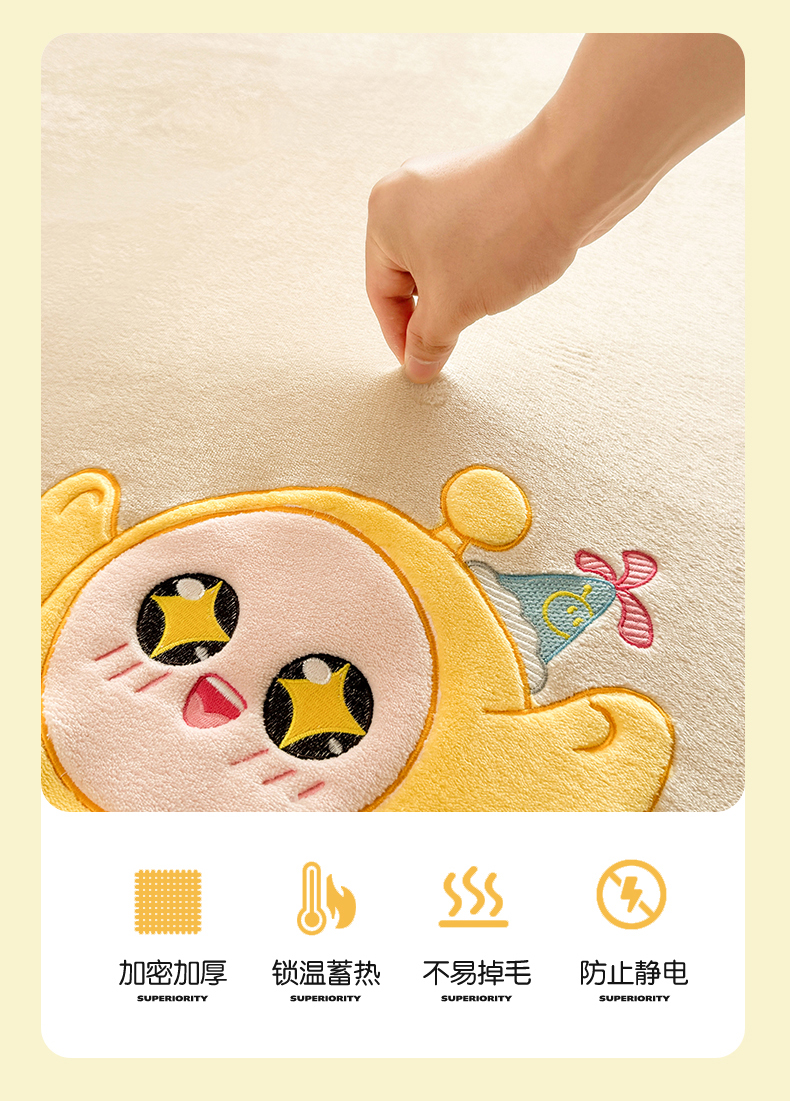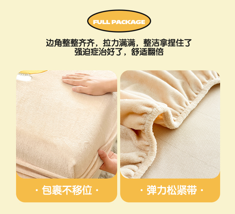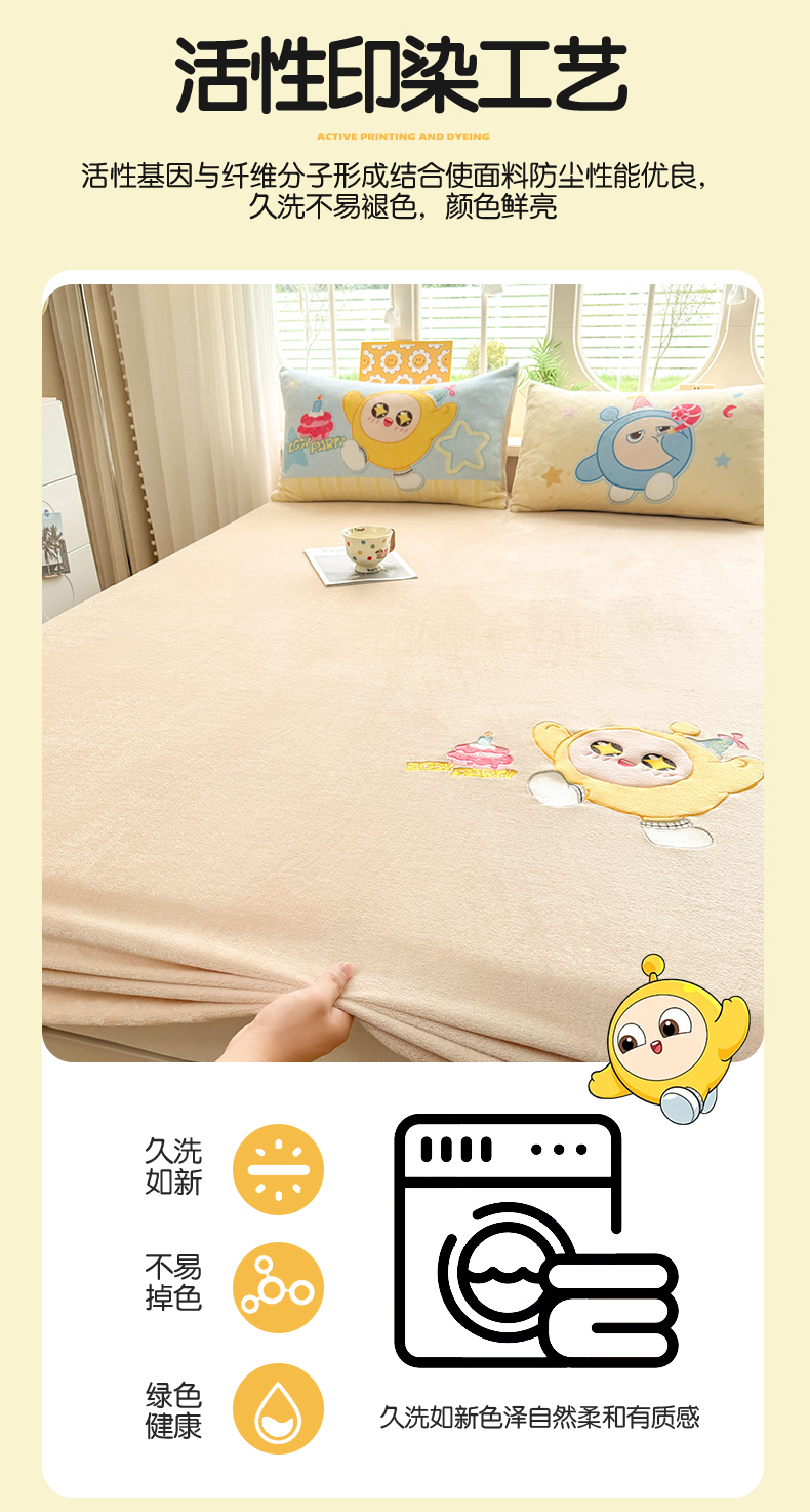 • 91家纺网 家纺一手货源 找家纺 雯豆家纺 正版授权IP纯色贴布绣牛奶绒床笠三件套加厚卡通床垫保护套 黄蛋仔-米