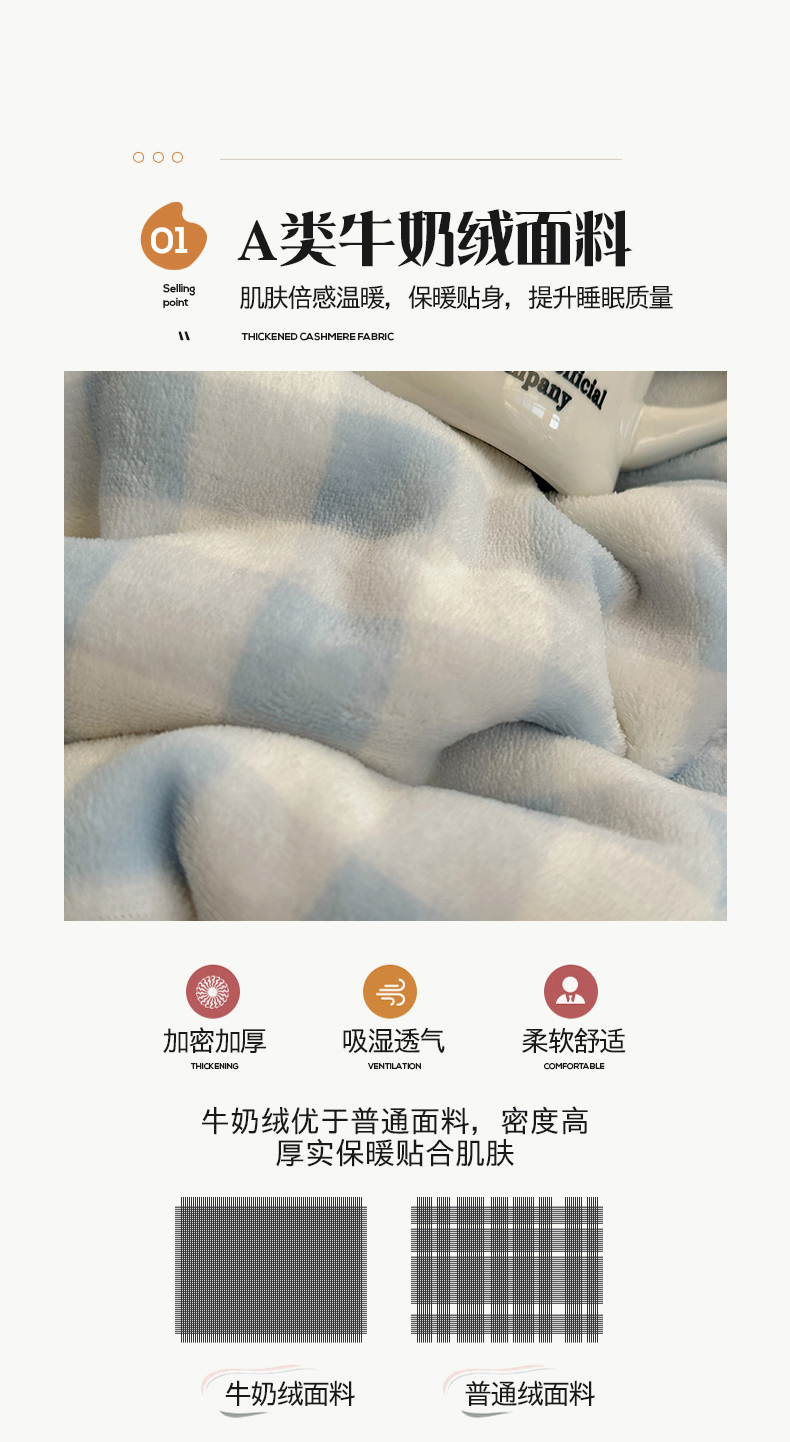 商品名称:(总)桃子家居 2025新款A类ins毛巾绣显眼包撞色格子玛卡龙加厚牛奶绒织标四件套-小清新图