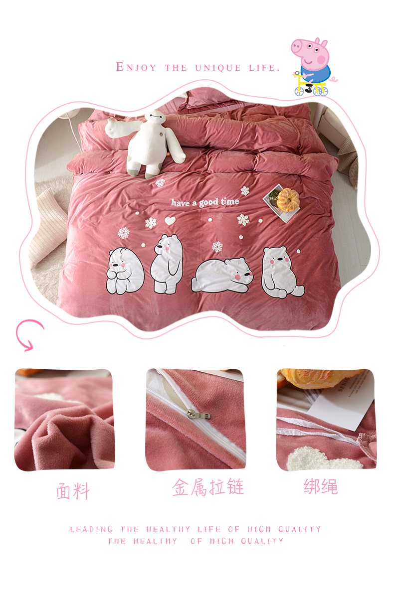 商品名称:梵克保罗 2025新款婴儿绒原创绣花卡通学生三件套四件套 小猪佩奇-灰