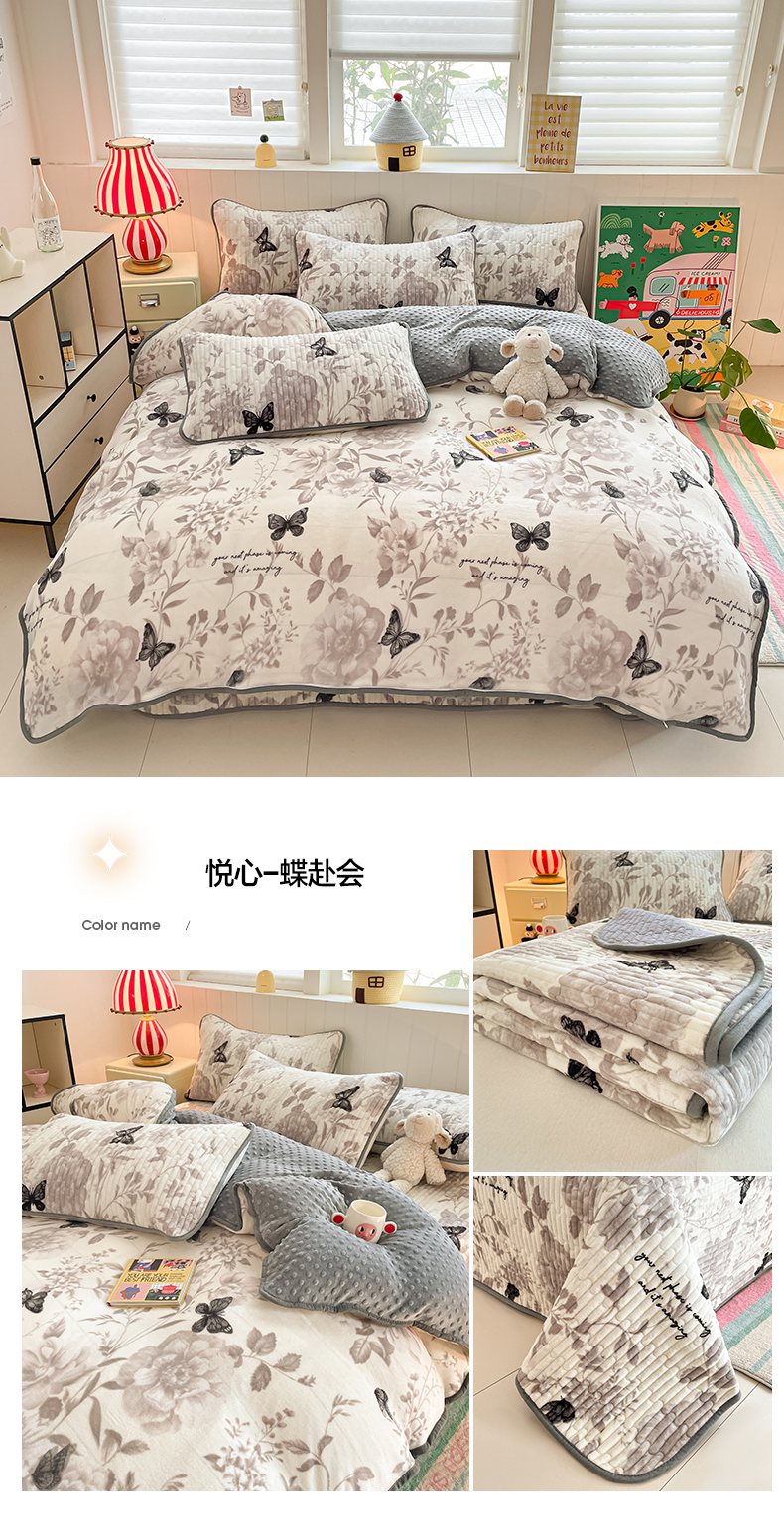 当前位置: 91家纺网 > 商品网购 > 床品套件 > 四件套 > 牛奶绒四件套 > 贝扬思家纺 2025新款高克重牛奶绒豆豆被套床盖四件套-悦心系列 悦心-蝶赴卉