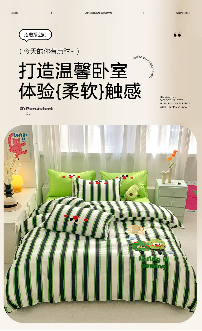 当前位置: 91家纺网 > 商品网购 > 床品套件 > 四件套 > 全棉普通四件套 > 如意朵 2025新款全棉纯棉小清新印花加绣花四件套 许愿树