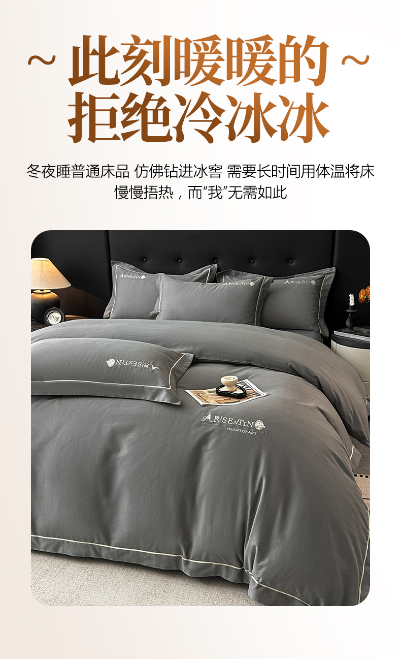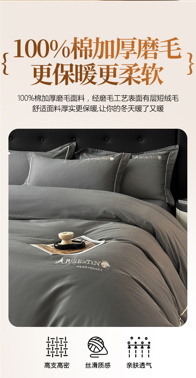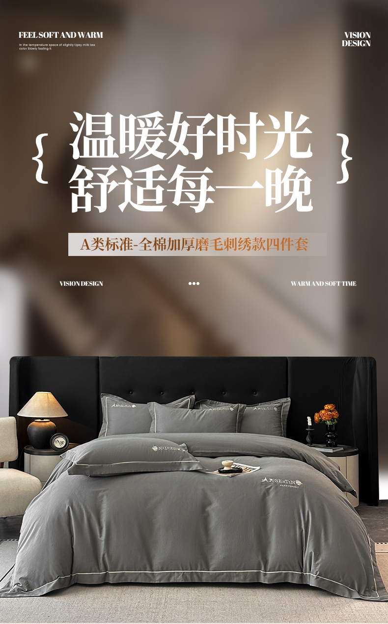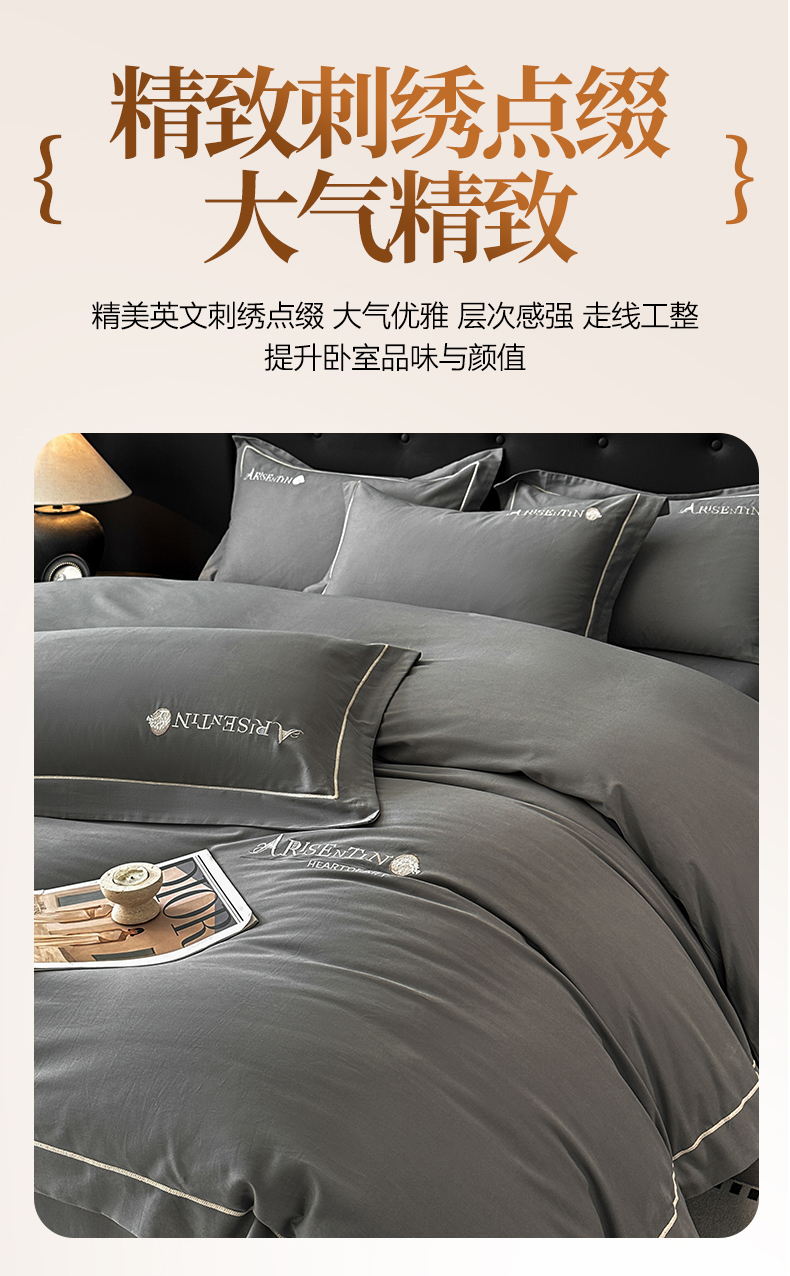 当前位置: 91家纺网 > 商品网购 > 床品套件 > 四件套 > 全棉普通四件套 > 小叮当家纺仓储工厂店 2025新款(买家秀 不断货)A类全棉长绒棉纯棉加厚刺绣磨毛四件套-邂逅 邂逅-气质灰