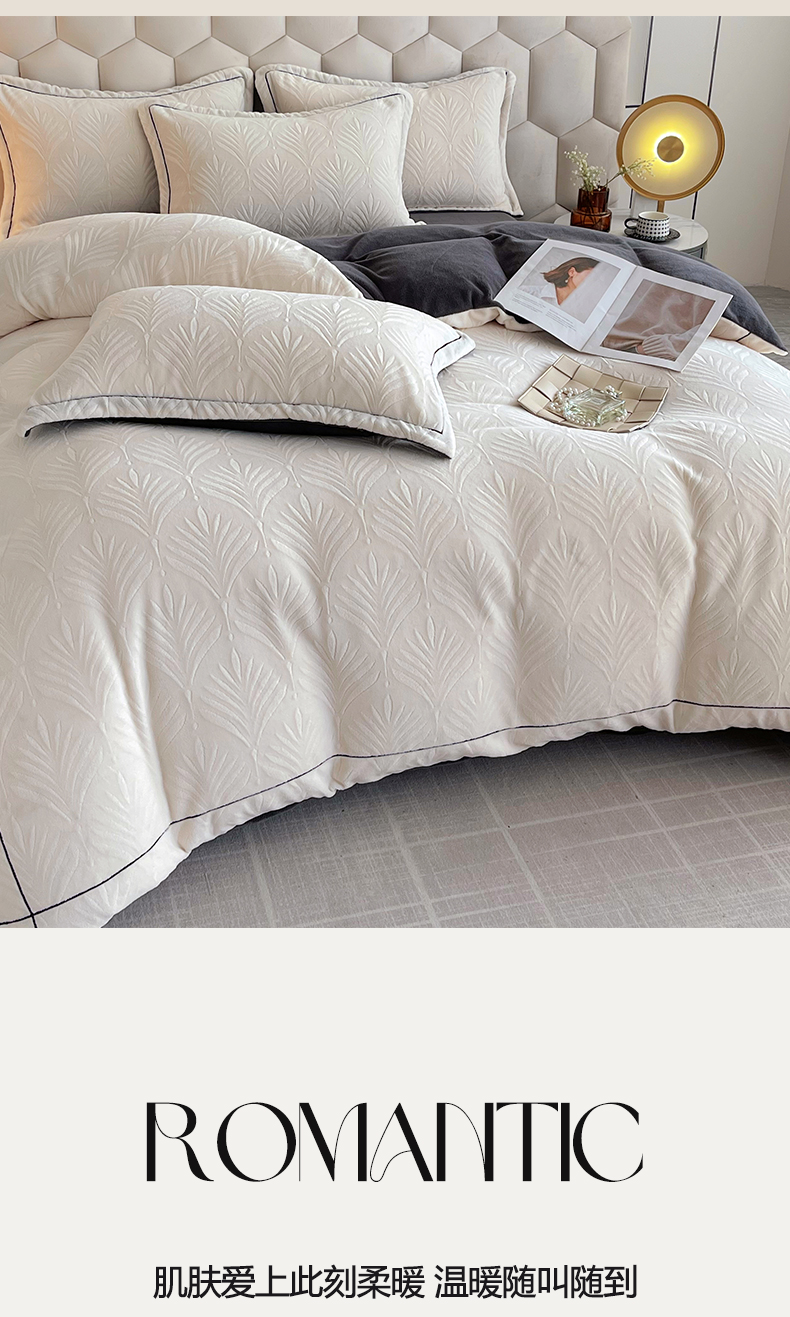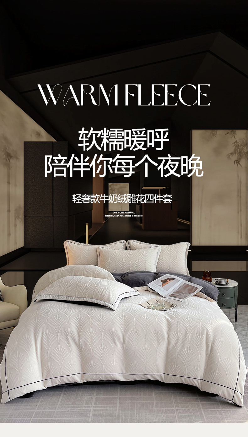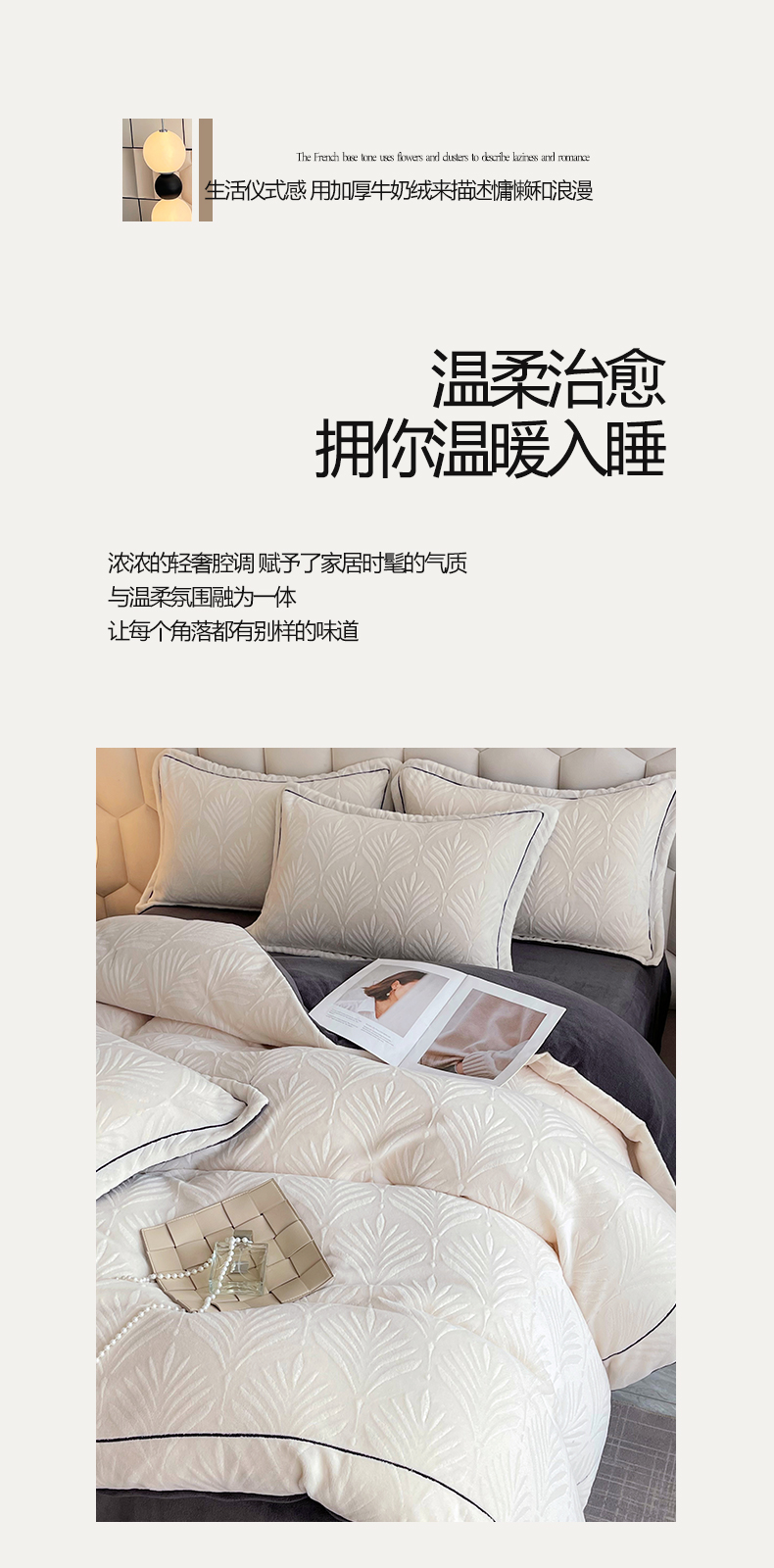 (总)慕希家纺 2025新款高克重牛奶绒雕花四件套-秘境,秘境-奶油白,秘境-浅山咖,秘境-樱花粉,秘境-云岩灰