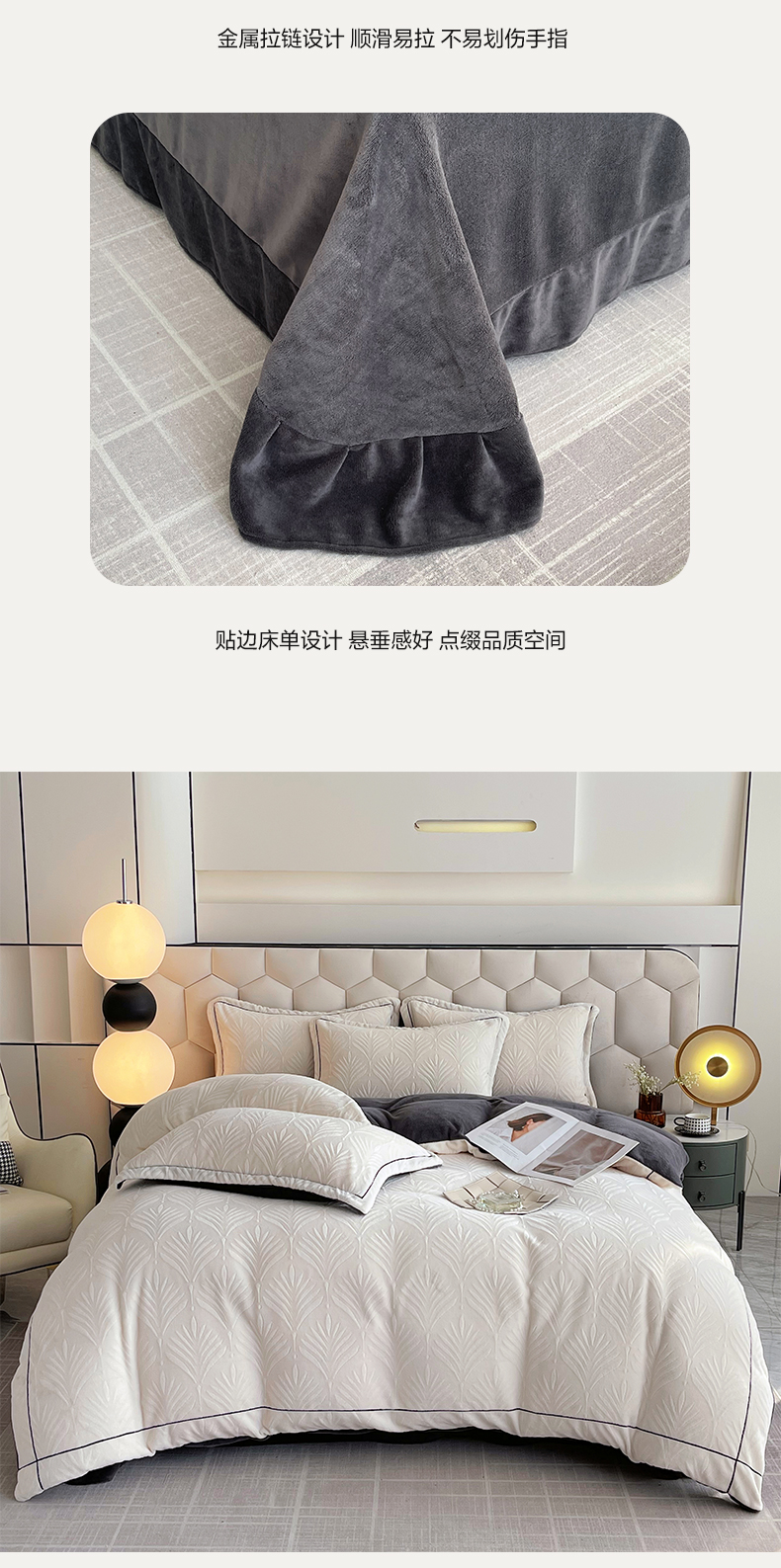 (总)慕希家纺 2025新款高克重牛奶绒花边床盖款四件套-格律时尚,格律时尚-红,格律时尚-灰,格律时尚-咖,格律时尚-蓝,格律时尚-绿