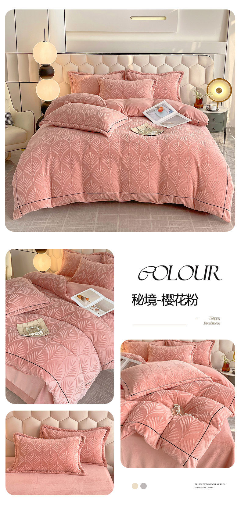 慕希家纺 2025新款高克重牛奶绒雕花四件套-秘境 秘境-樱花粉