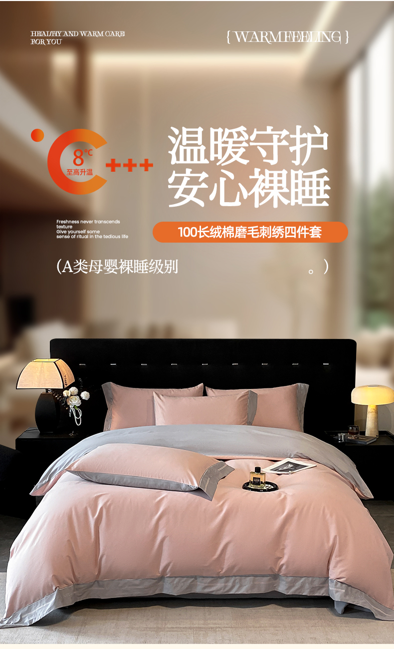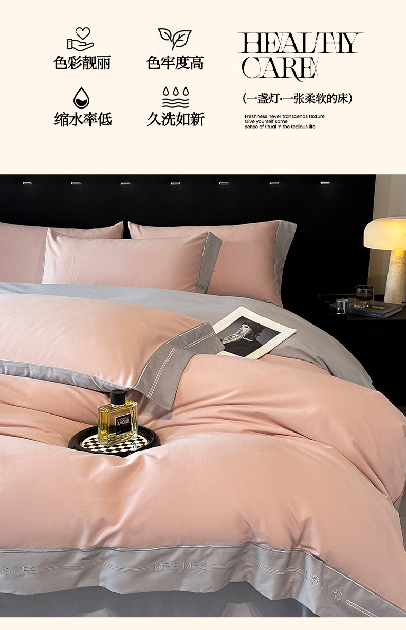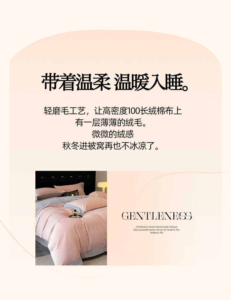 商品名称:小叮当家纺仓储工厂店 2025新款 (买家秀 不断货)更细腻A类全棉纯棉100支长绒棉磨毛四件套不毛 果粉浅银
