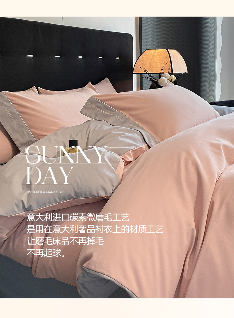 小叮当家纺仓储工厂店 2025新款 (买家秀 不断货)更细腻A类全棉纯棉100支长绒棉磨毛四件套不毛 果粉浅银