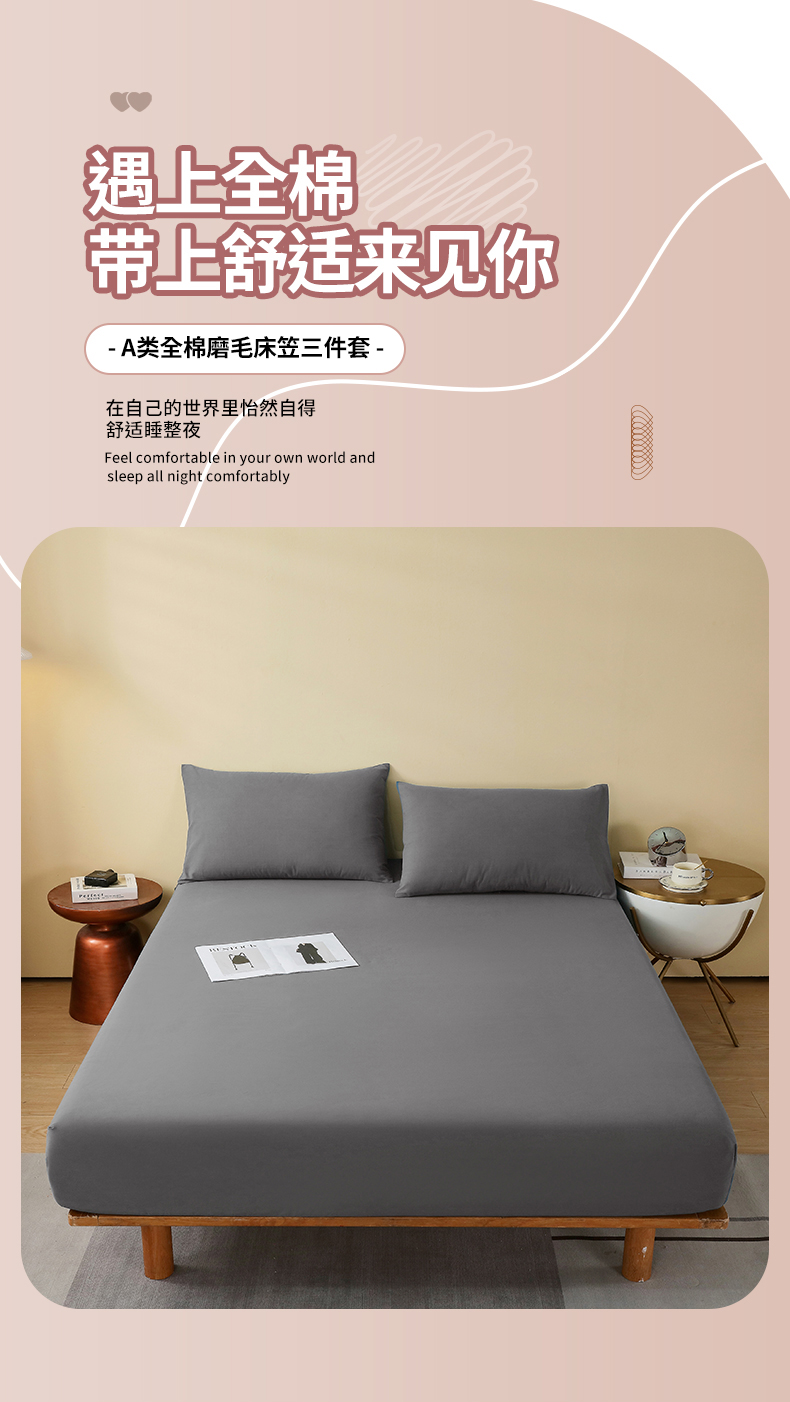 小叮当家纺仓储工厂店 2025新款提供买家秀爆款花型不断货A类母婴级全棉磨毛床笠单品床笠单件床笠 魅影灰