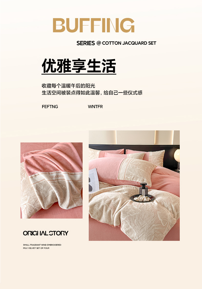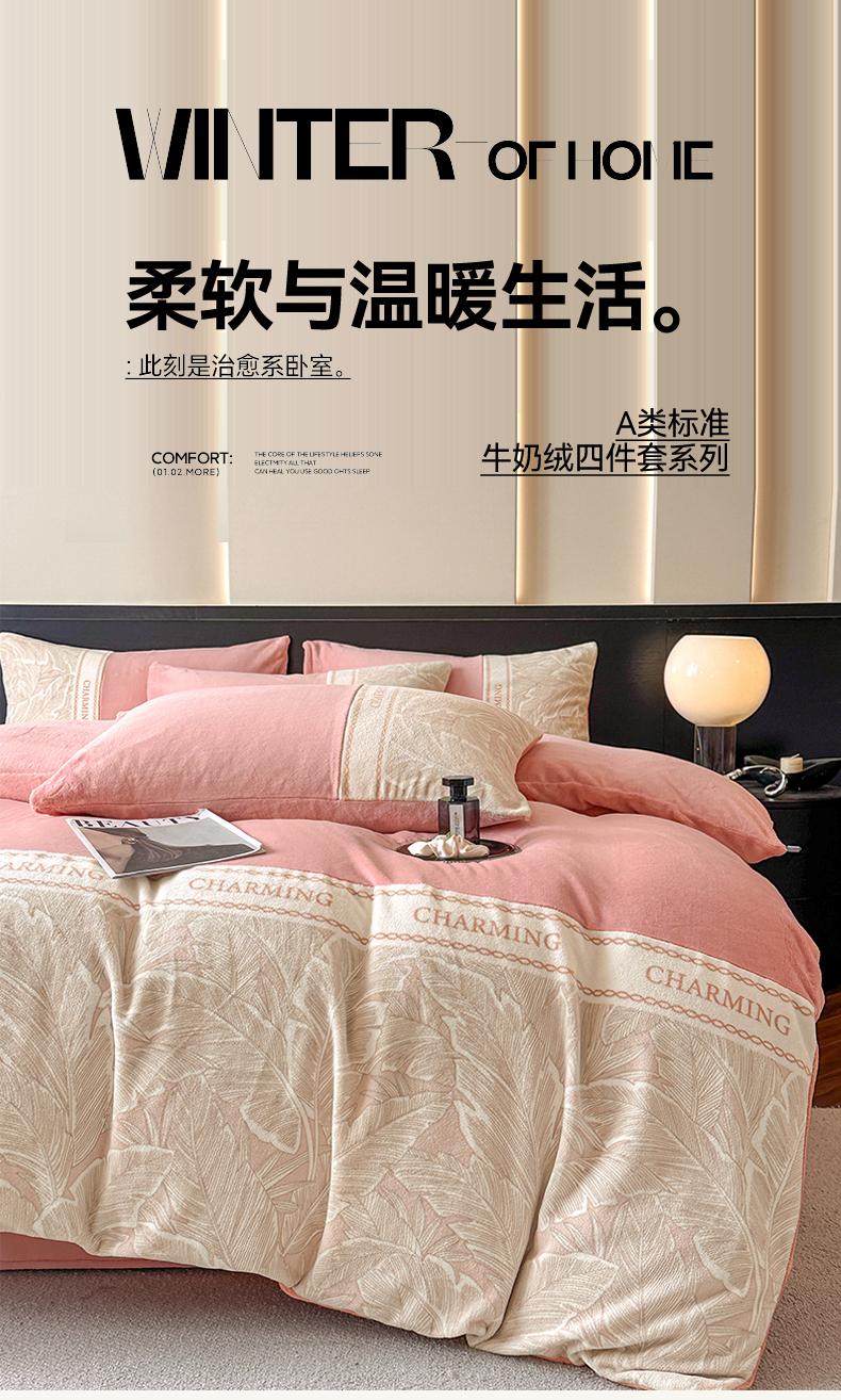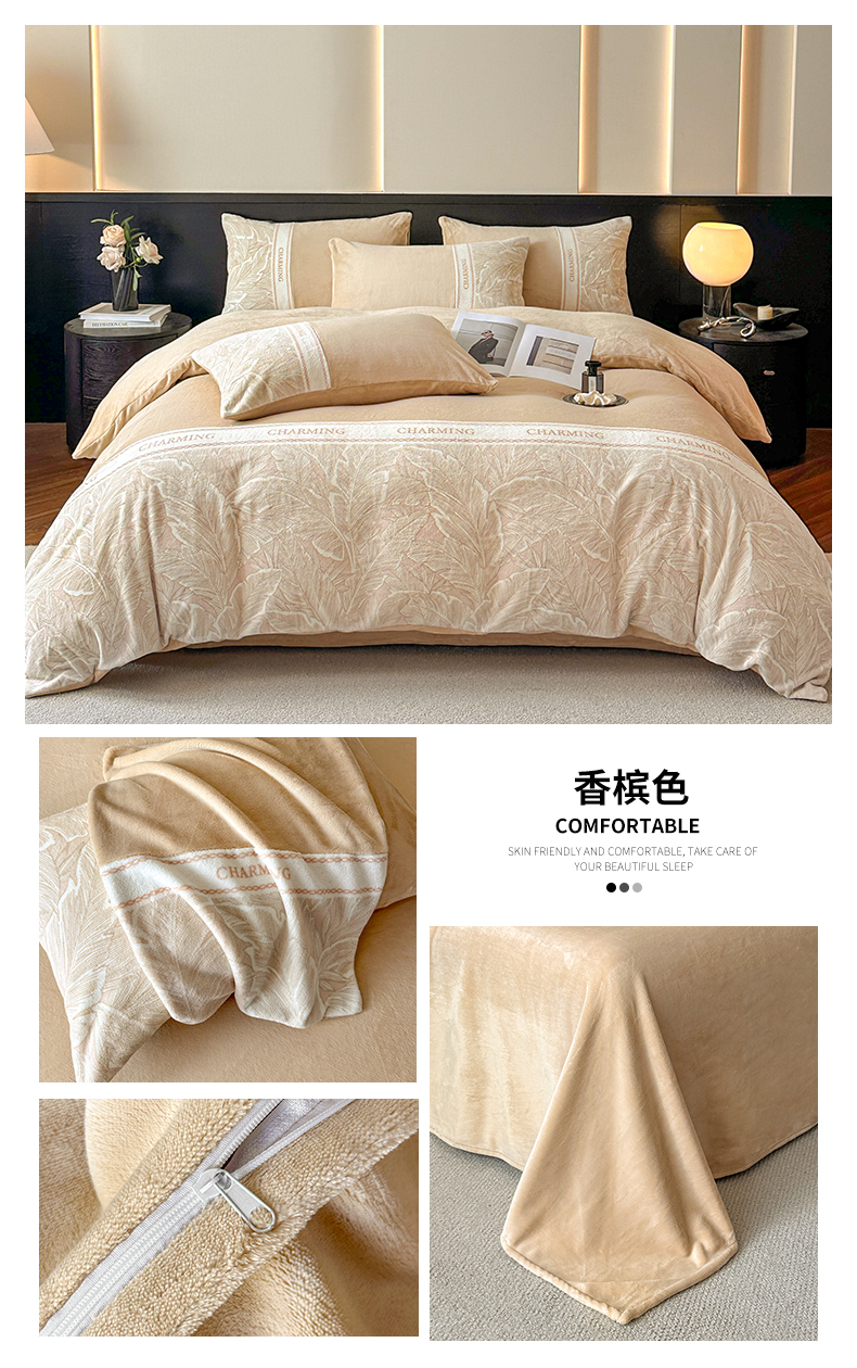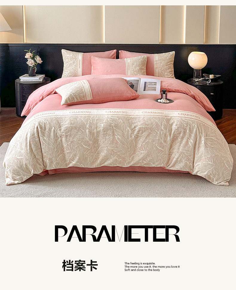 (总)梦幻之城 2025新款雕花牛奶绒系列四件套-丽娜,丽娜-橙意粉,丽娜-香槟色,丽娜-香草灰,丽娜-月白绿
