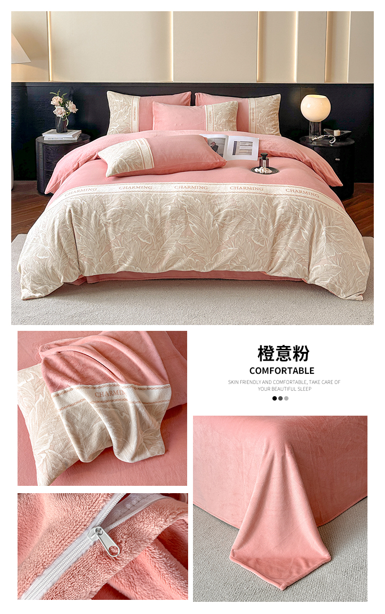 梦幻之城 2025新款牛奶绒刺绣款四件套-苏缦 苏缦-橙意粉