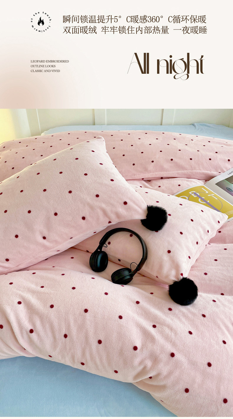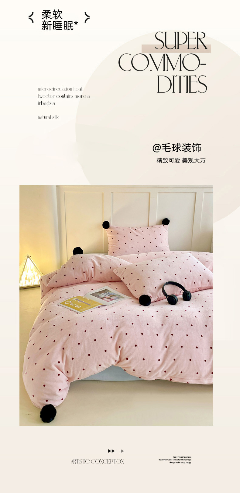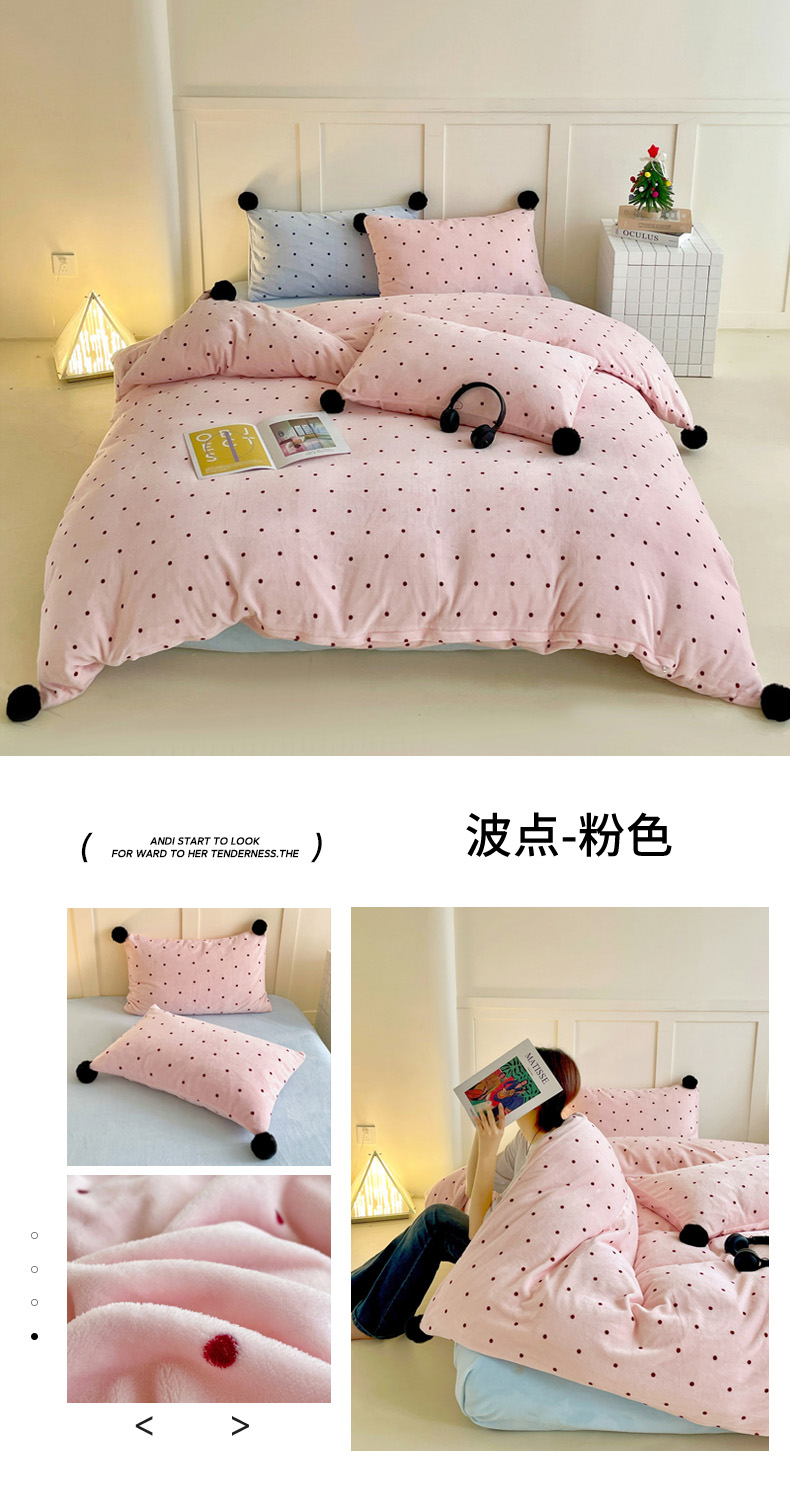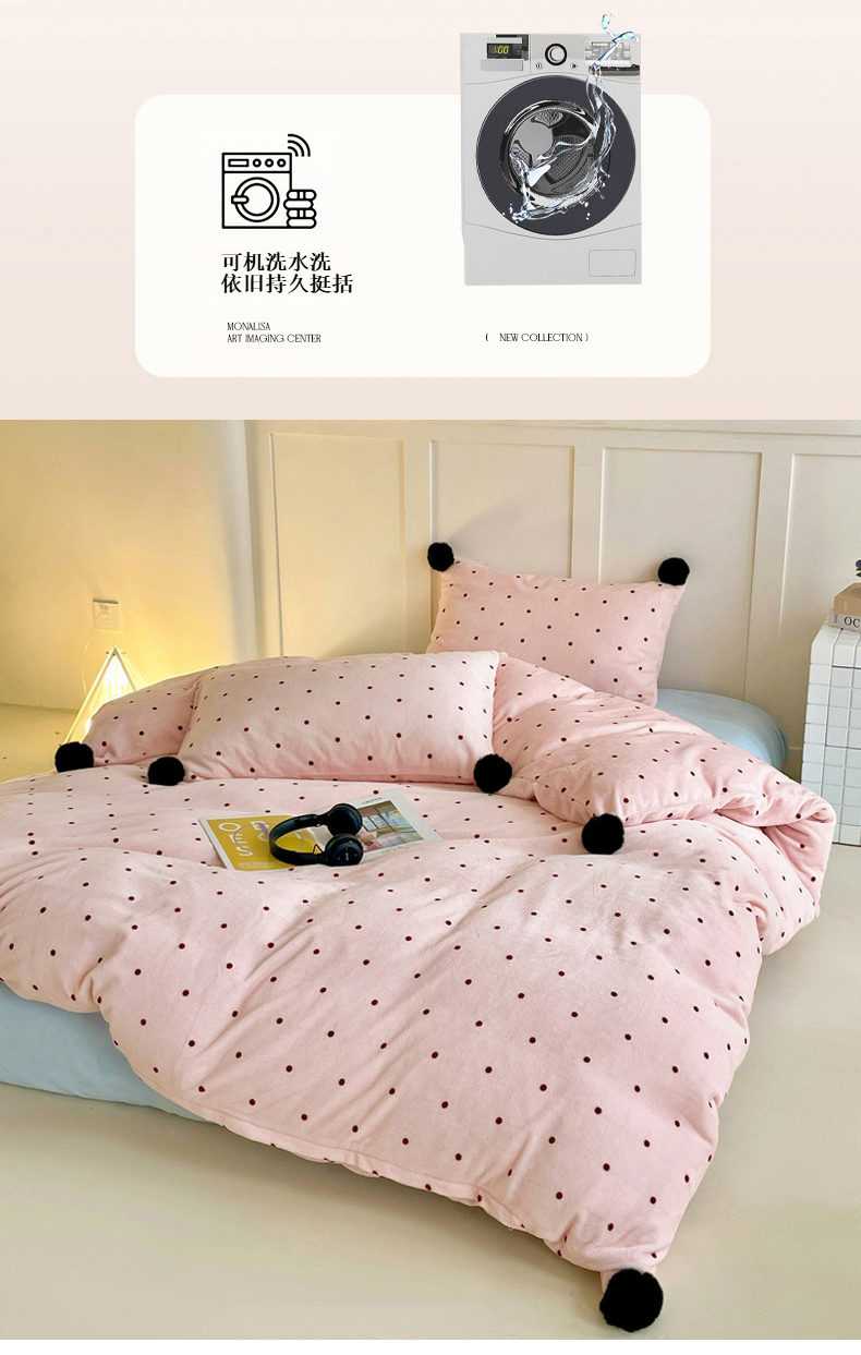 当前位置: 91家纺网 > 商品网购 > 床品套件 > 四件套 > 牛奶绒四件套 > 丽涵家纺 2025秋冬新品混搭波点牛奶绒四件套-拍摄风格一 波点-粉色