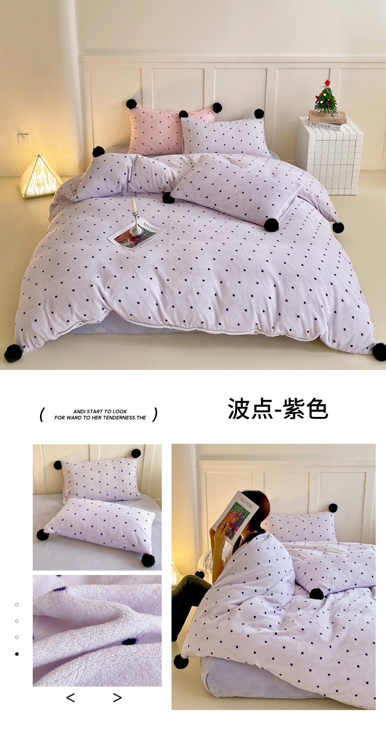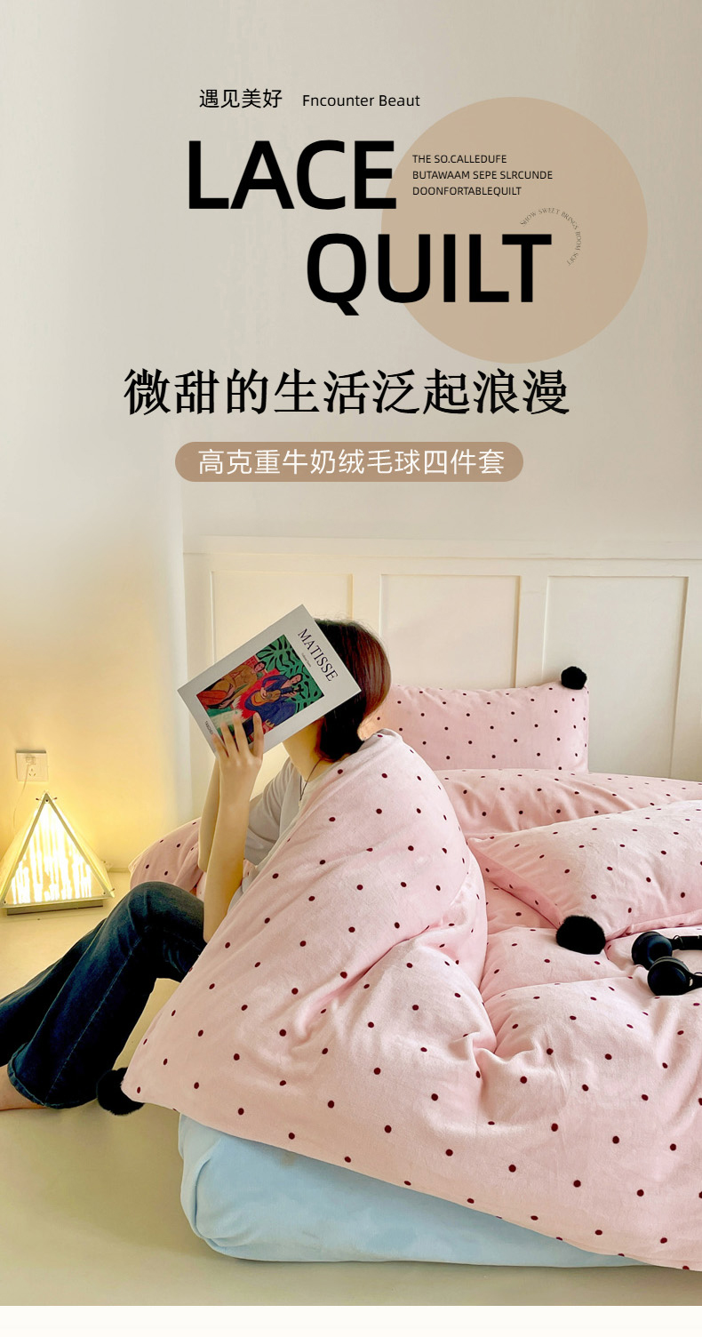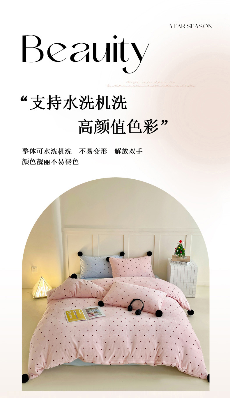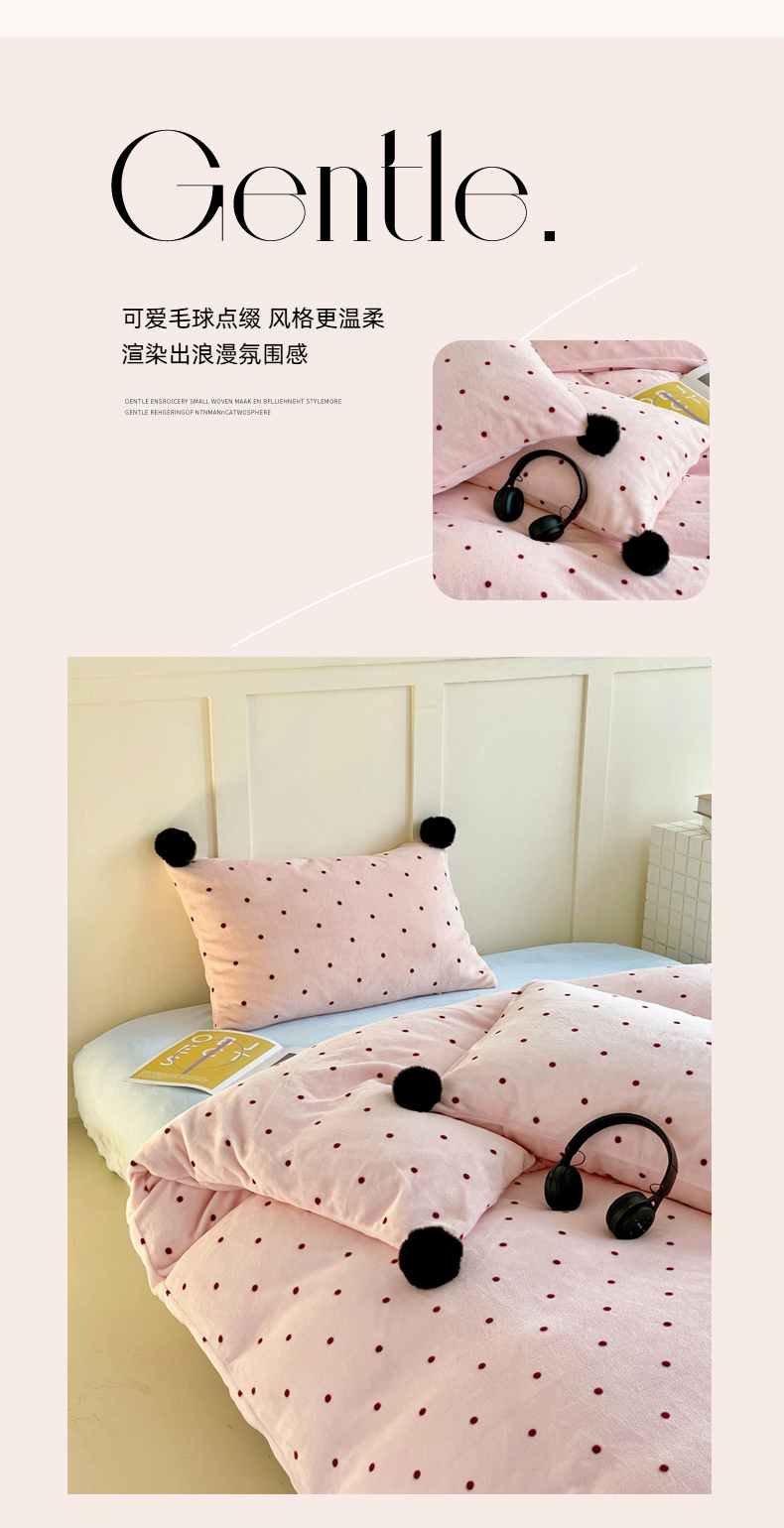 当前位置: 91家纺网 > 商品网购 > 床品套件 > 四件套 > 牛奶绒四件套 > 丽涵家纺 2025秋冬新品混搭波点牛奶绒四件套-拍摄风格一 波点-粉色