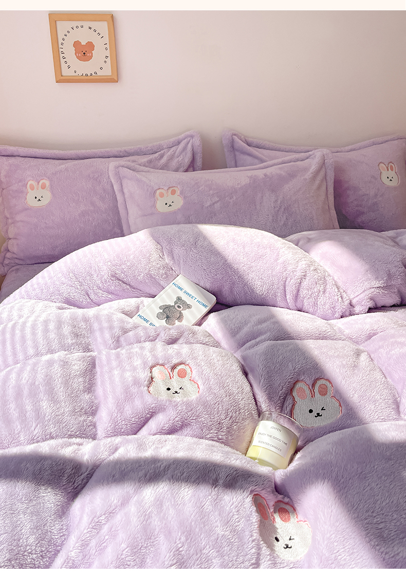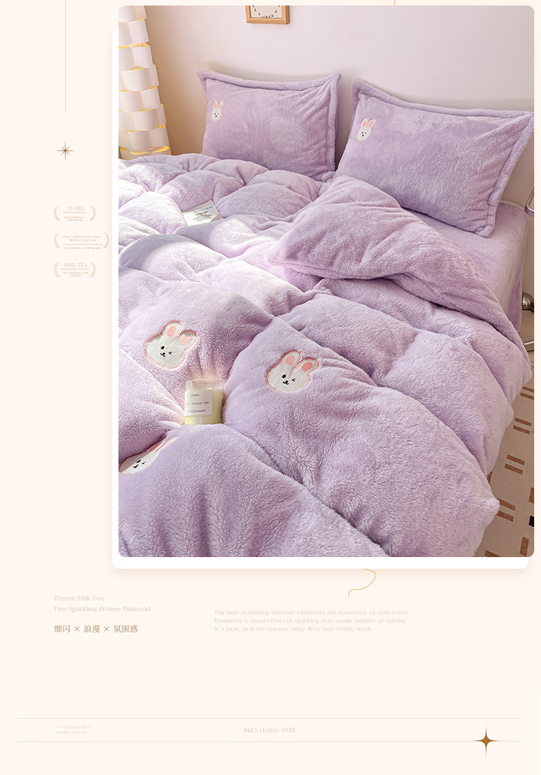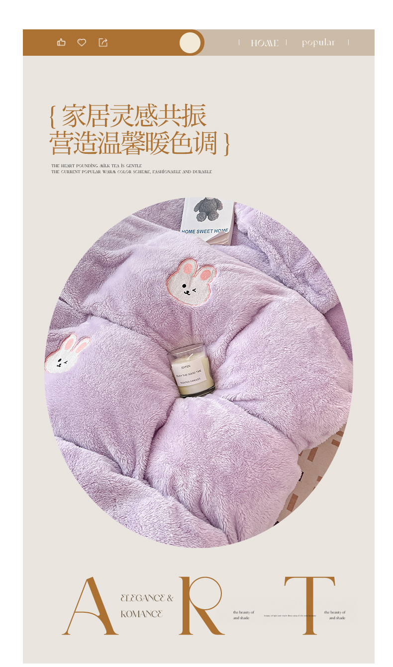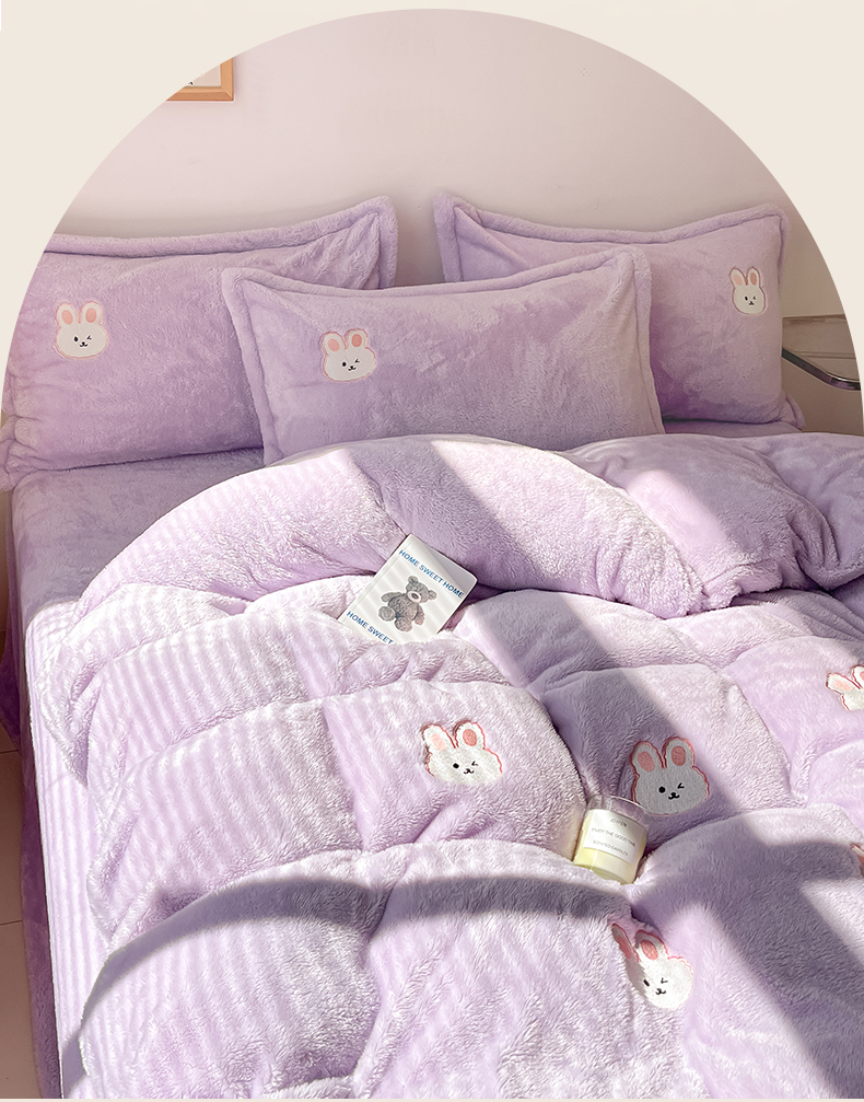 当前位置: 91家纺网 > 商品网购 > 床品套件 > 四件套 > 牛奶绒四件套 > 梦幻之城 2025新款北极绒绣花系列四件套-萌宠 萌宠-丁香紫