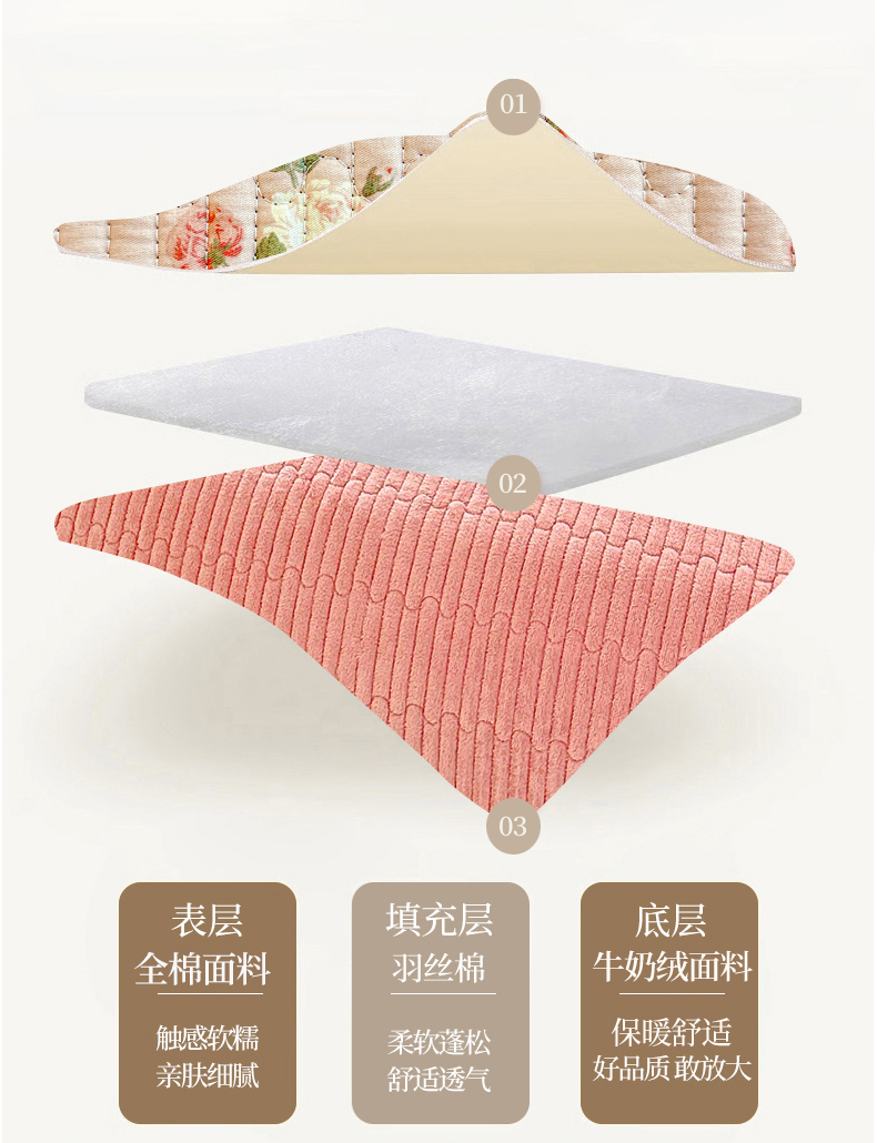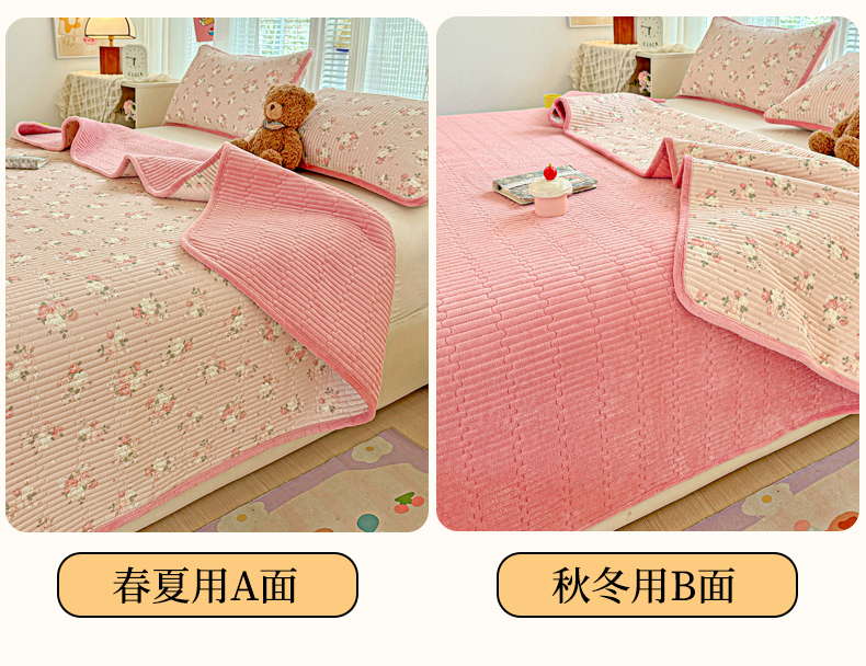 • 91家纺网 家纺一手货源 找家纺 恒尚居 2025新款全棉牛奶绒床盖四季可用纯棉夹棉床单床褥垫三件套-秋冬款系列三 晚庭粉【A纯棉-B牛奶绒】