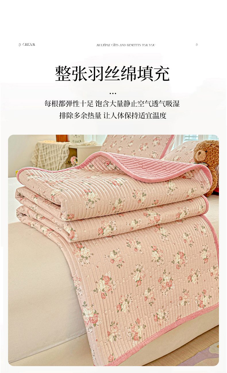 恒尚居 2025新款全棉牛奶绒床盖四季可用纯棉夹棉床单床褥垫三件套-秋冬款系列三 晚庭粉【A纯棉-B牛奶绒】