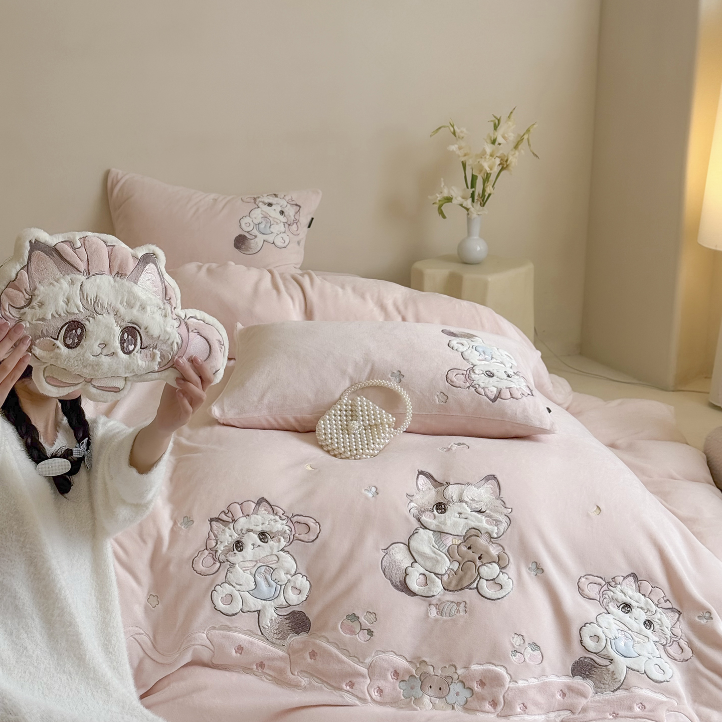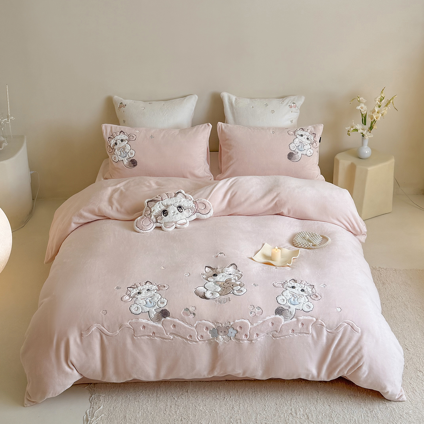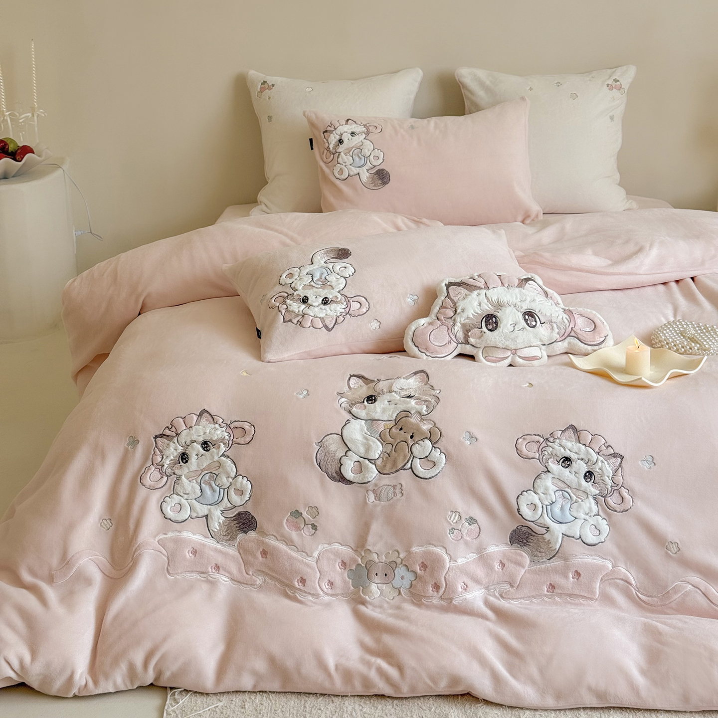 当前位置: 91家纺网 > 商品网购 > 床品套件 > 四件套 > 牛奶绒四件套 > (总)鹿班家居 2025新款冬季高克重牛奶绒贴布绣系列四件套-彩虹喵酱(标准会员-10元)