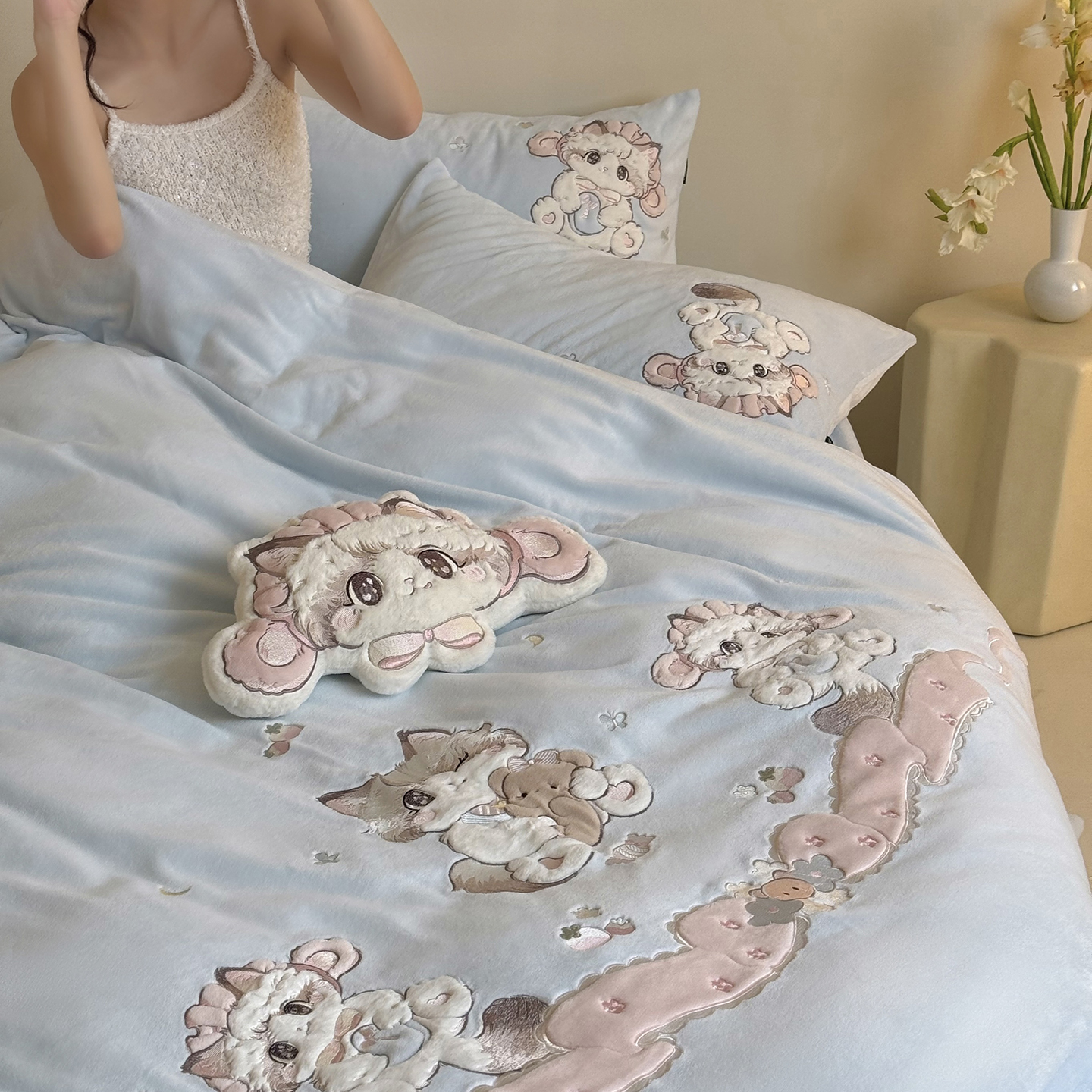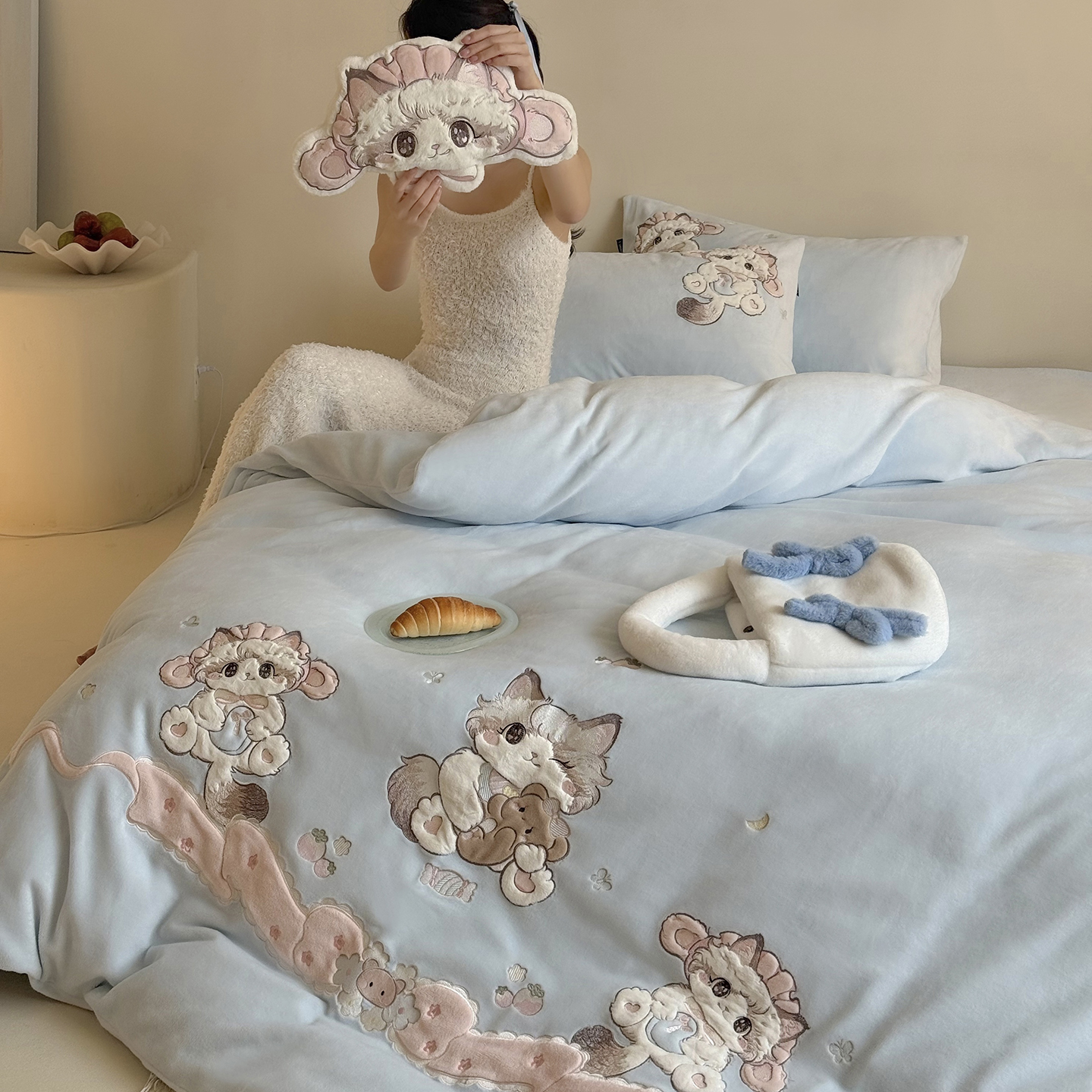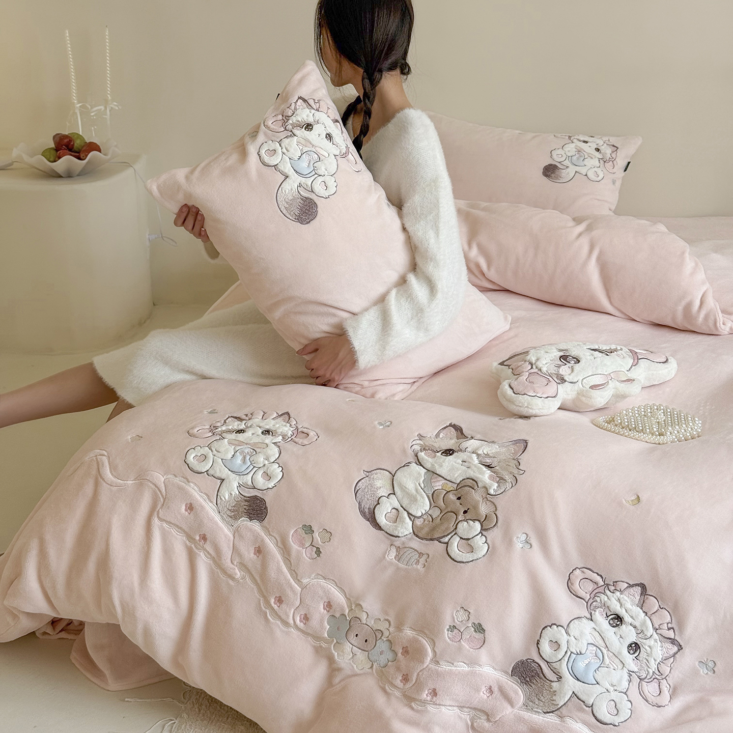 当前位置: 91家纺网 > 商品网购 > 床品套件 > 四件套 > 牛奶绒四件套 > (总)鹿班家居 2025新款冬季高克重牛奶绒贴布绣系列四件套-彩虹喵酱(标准会员-10元)