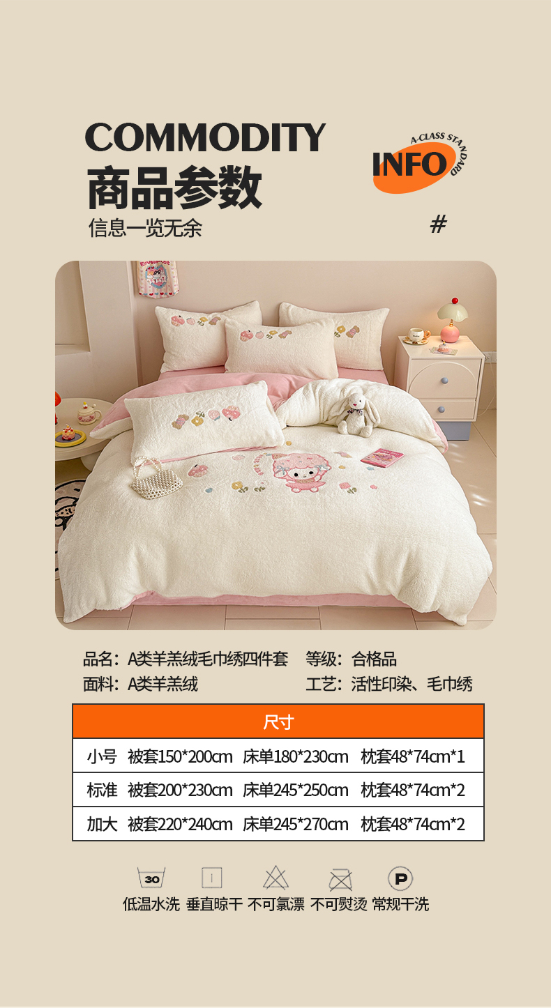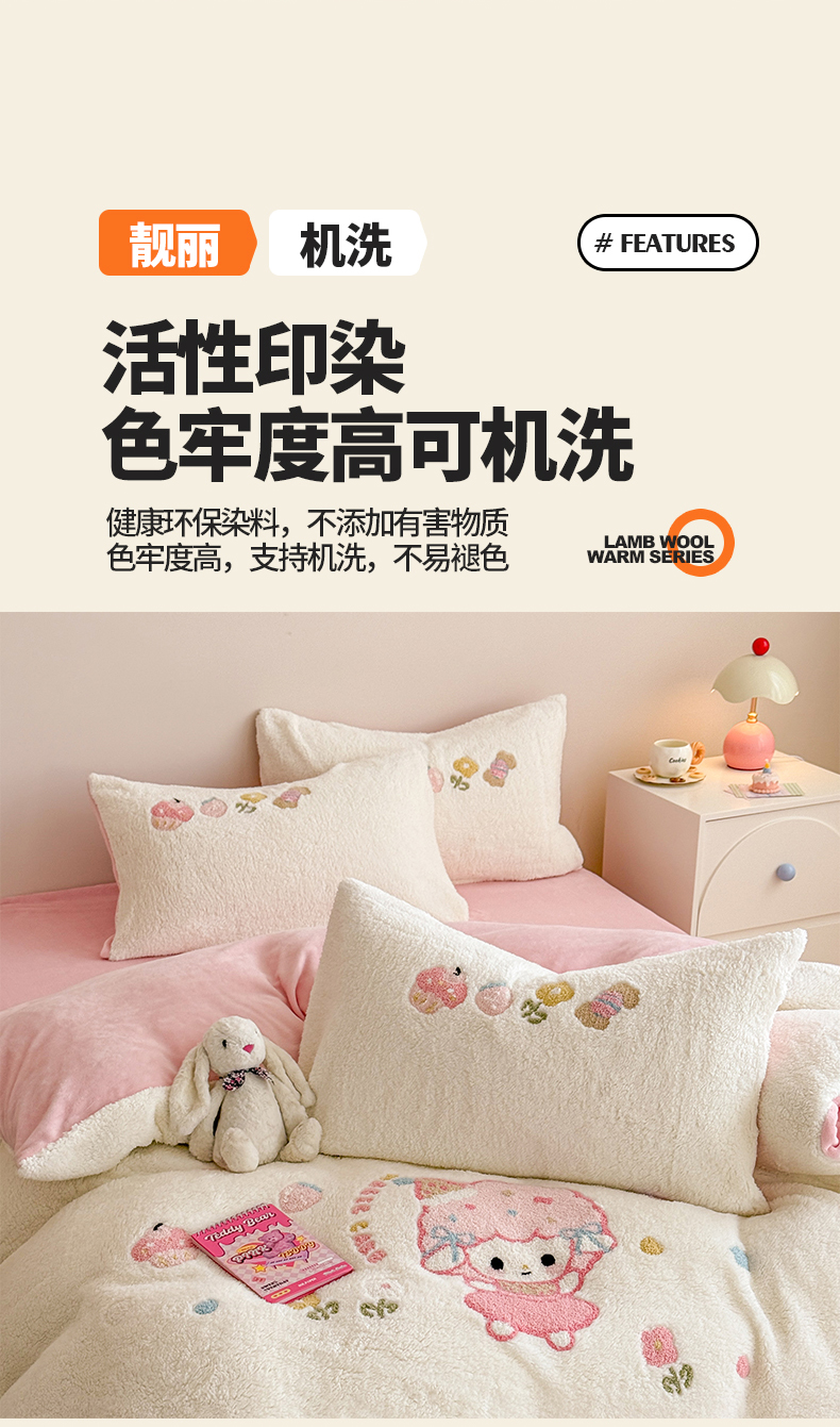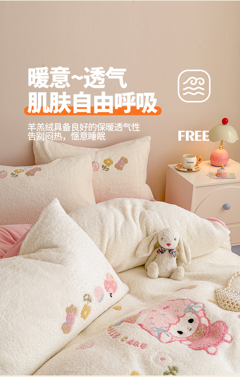 当前位置: 91家纺网 > 商品网购 > 床品套件 > 四件套 > 其它四件套 > 典曼家纺 2025新款A类羊羔绒刺绣四件套系列 可爱童梦