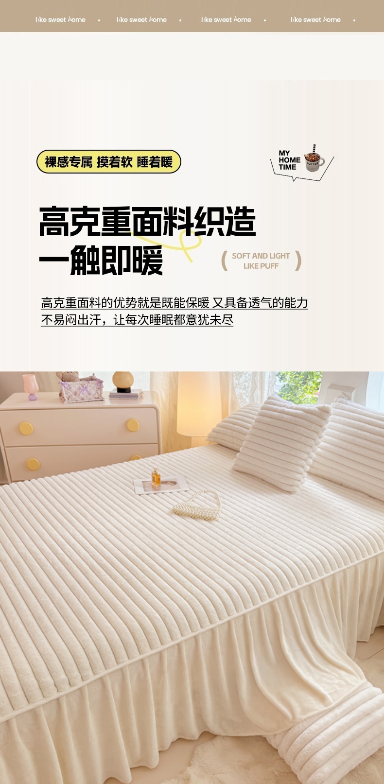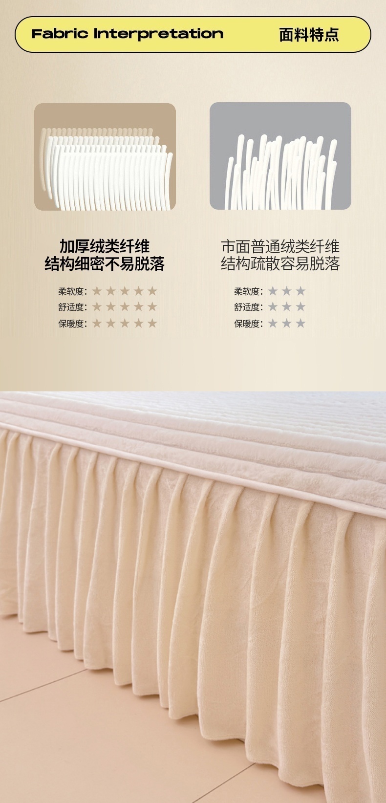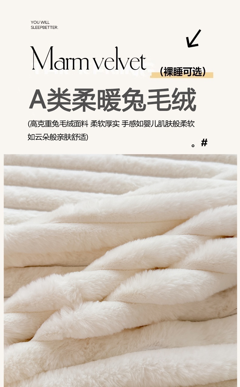 商品名称:梦舒羽 2025新款兔毛绒床裙法兰绒床垫保护罩牛奶绒床垫法莱绒床单罩-抽条 兔毛绒抽条-晨曦白