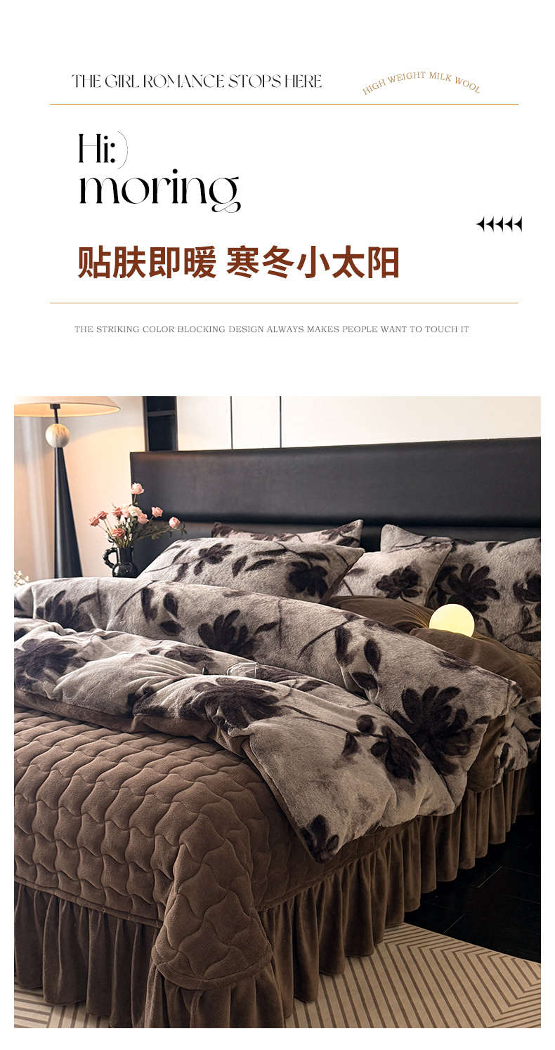 (总)金盛皇朝家纺 2024新款双层花边牛奶绒夹棉床盖四件套,繁花米兔,花影如梦,萌宝熊猫,甜甜宝贝,兔兔吉祥,心心相印,悠悠米咖,紫韵格调