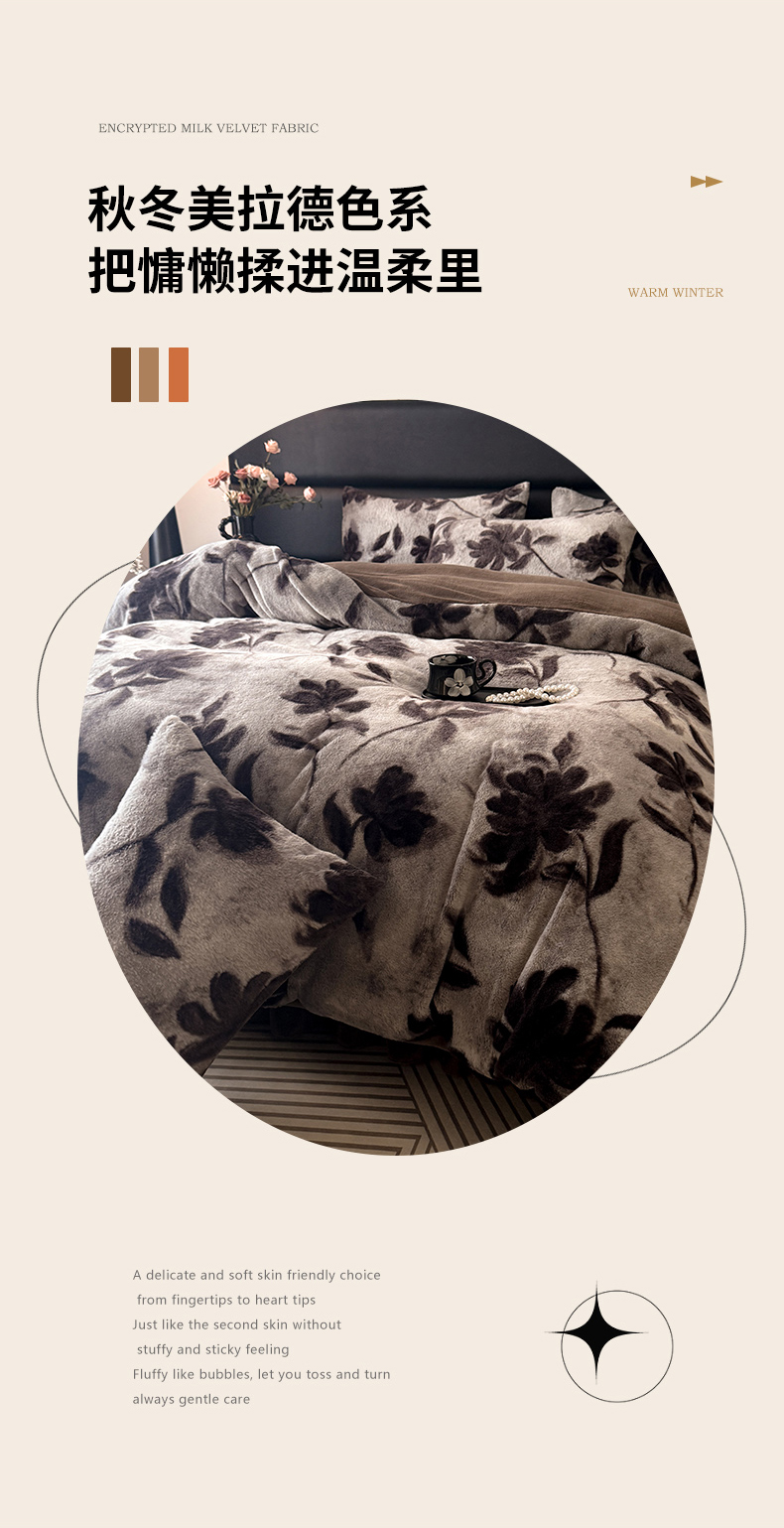 商品名称:(总)金盛皇朝家纺 2025新款加厚高克重兔毛牛奶绒美拉德色系床盖单件三件套四件套