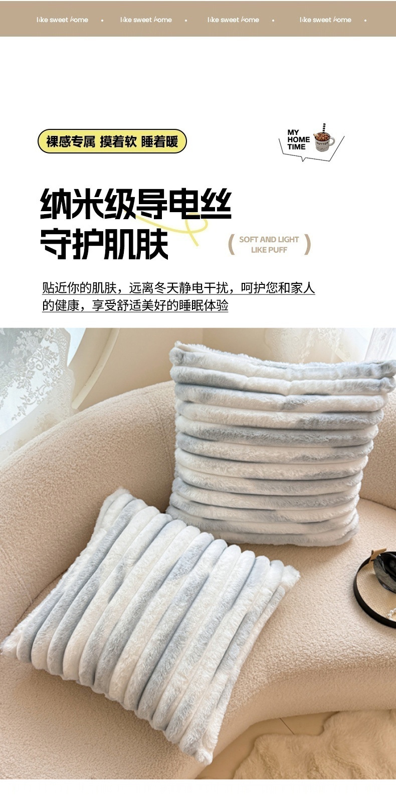当前位置: 91家纺网 > 商品网购 > 居家日用 > 靠垫/抱枕 > 圣比熊 2025新款兔毛绒抱枕套法兰绒枕套宿舍枕芯套法莱绒30x50枕头套-抽条 兔毛绒抽条-梦幻浅灰